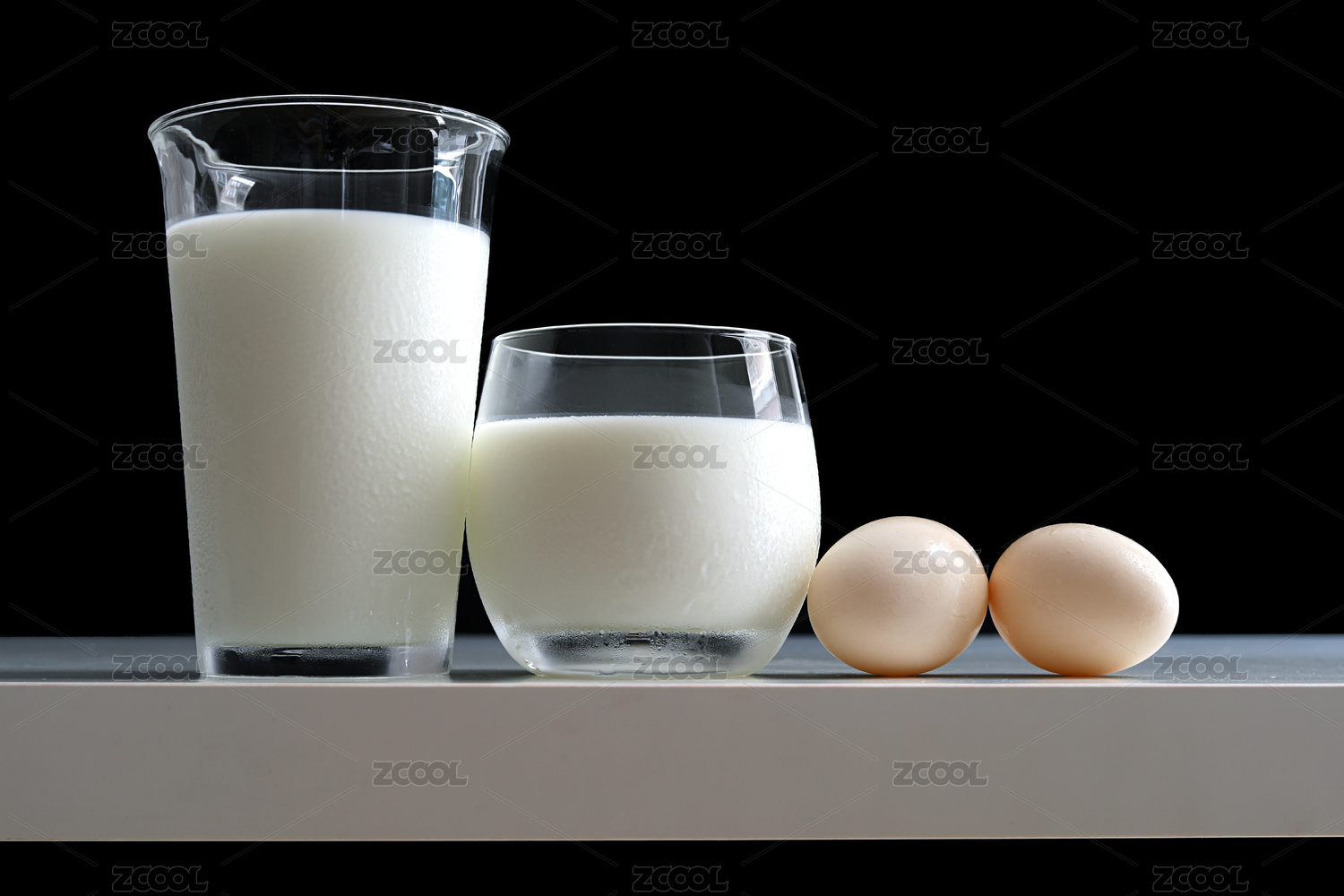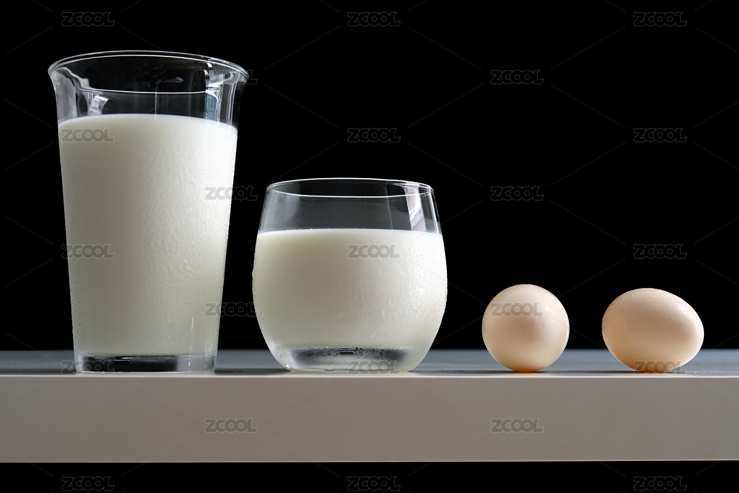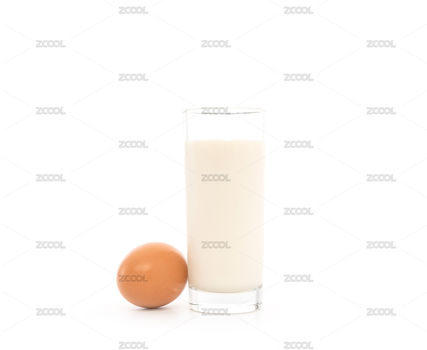 一杯牛奶与鸡蛋,白色背景,营养早餐