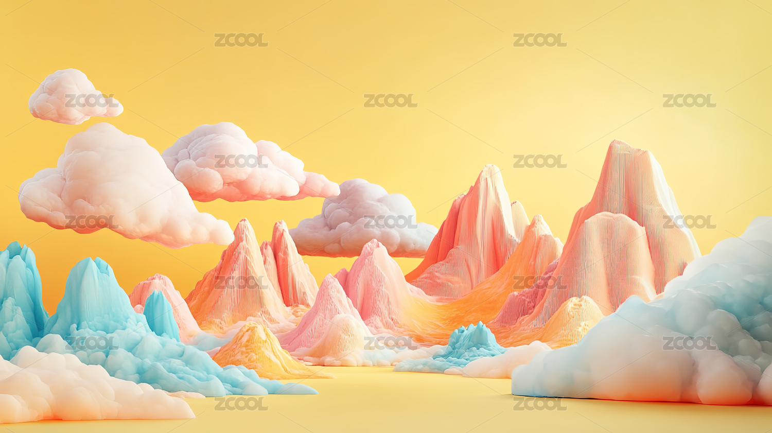糖果色梦幻3d山峰背景