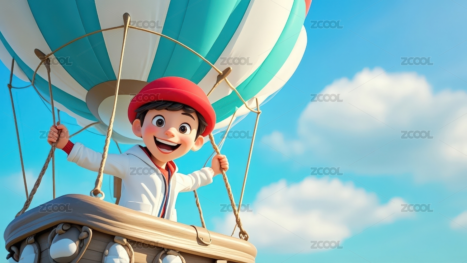 卡通男孩热气球旅行