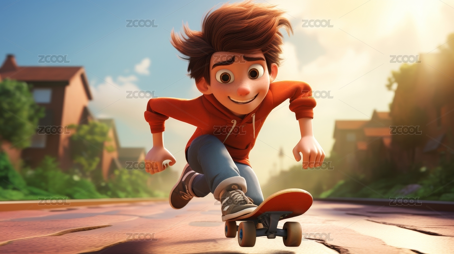 玩滑板的少年插画