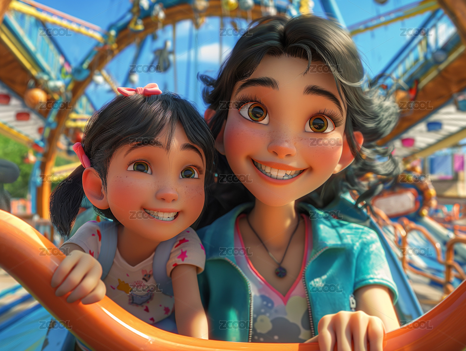 3D母女在游乐场玩耍