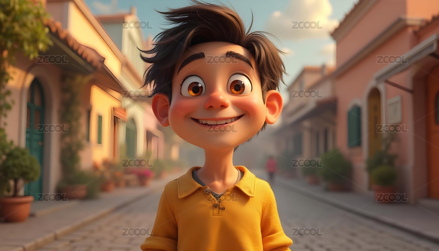 3D卡通少数民族男生在草原骑马招手