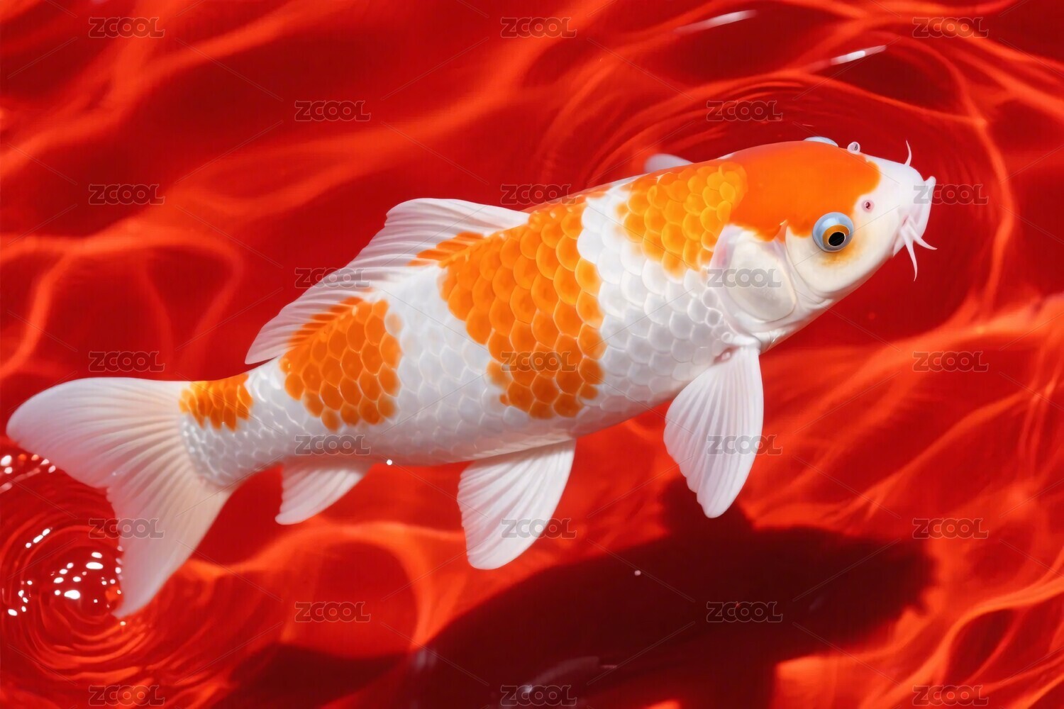 水中游动的红锦鲤