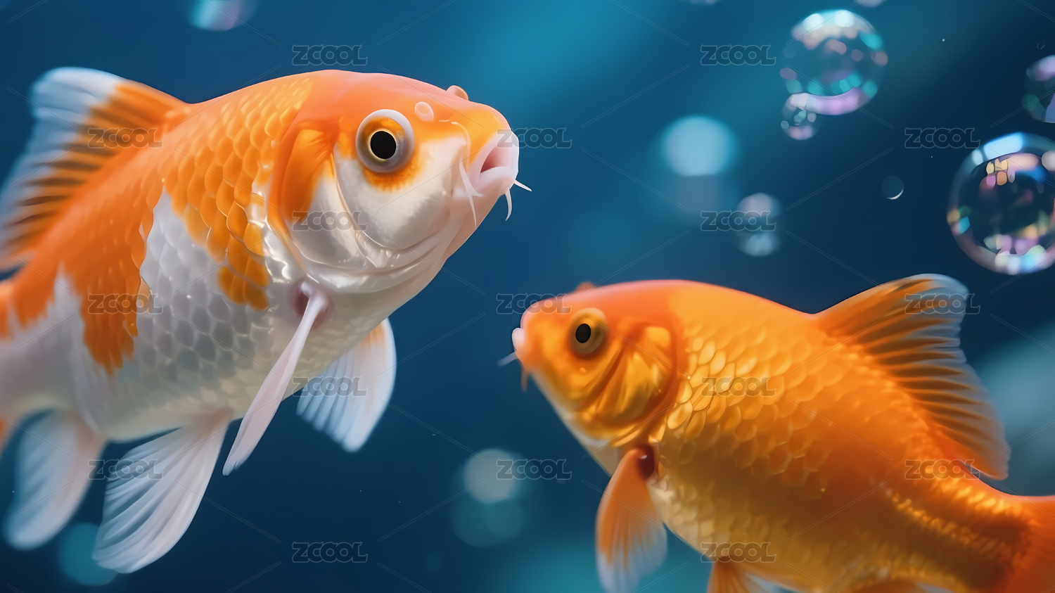 橙白金鱼水下世界