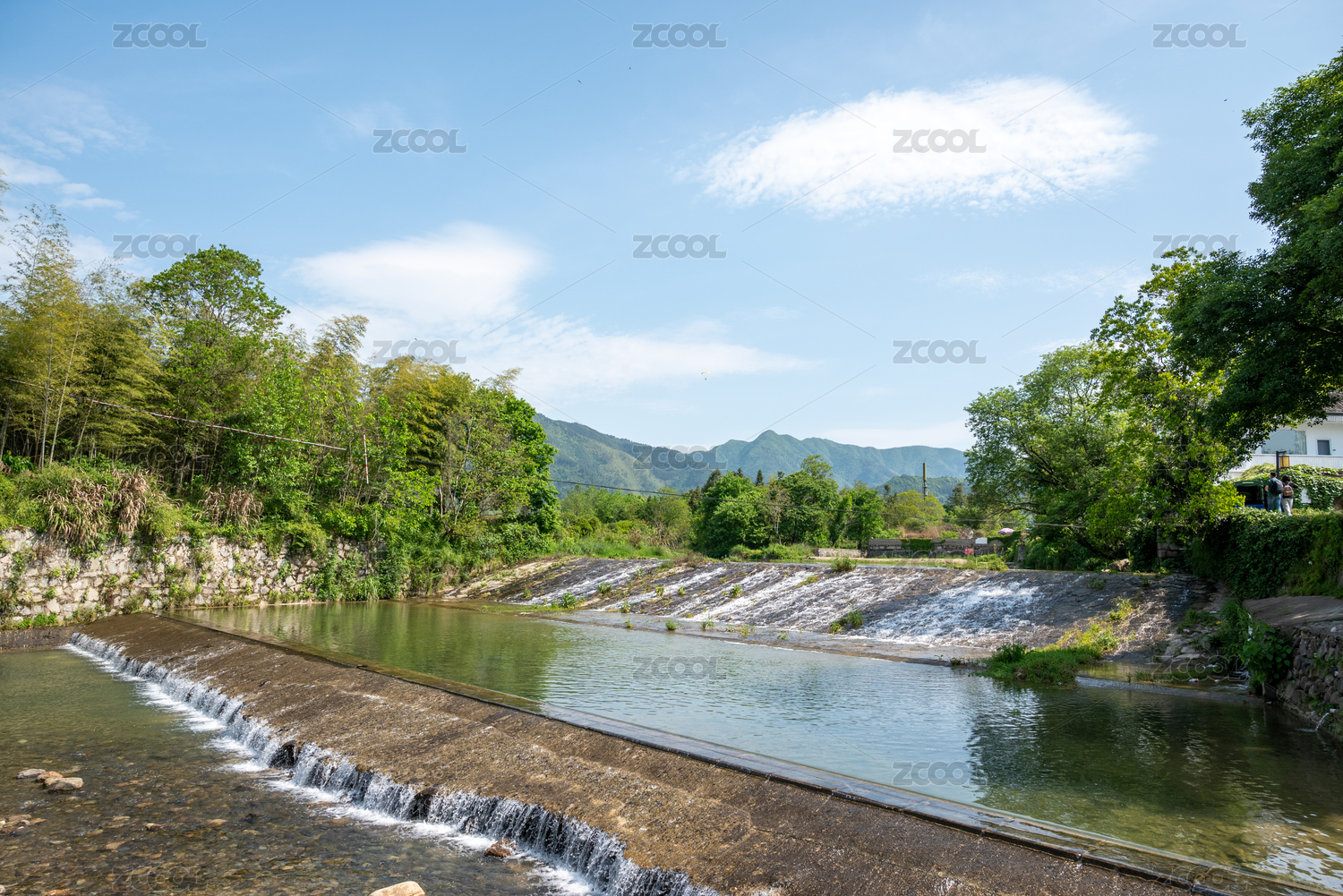 中国江西景德镇蓝天白云下昌江源头沿岸山水风光
