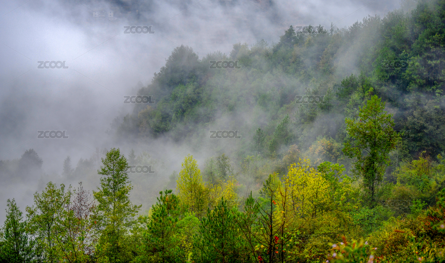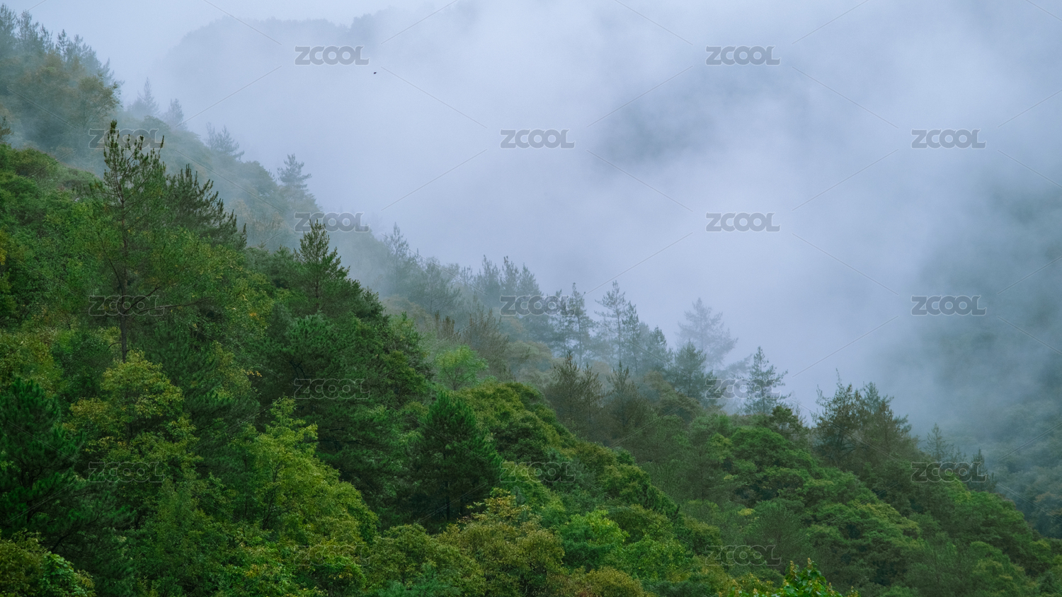 云雾缭绕的山林景色