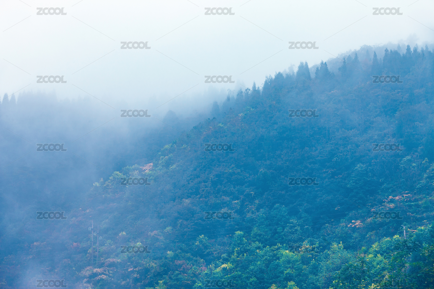 松林上空的云雾