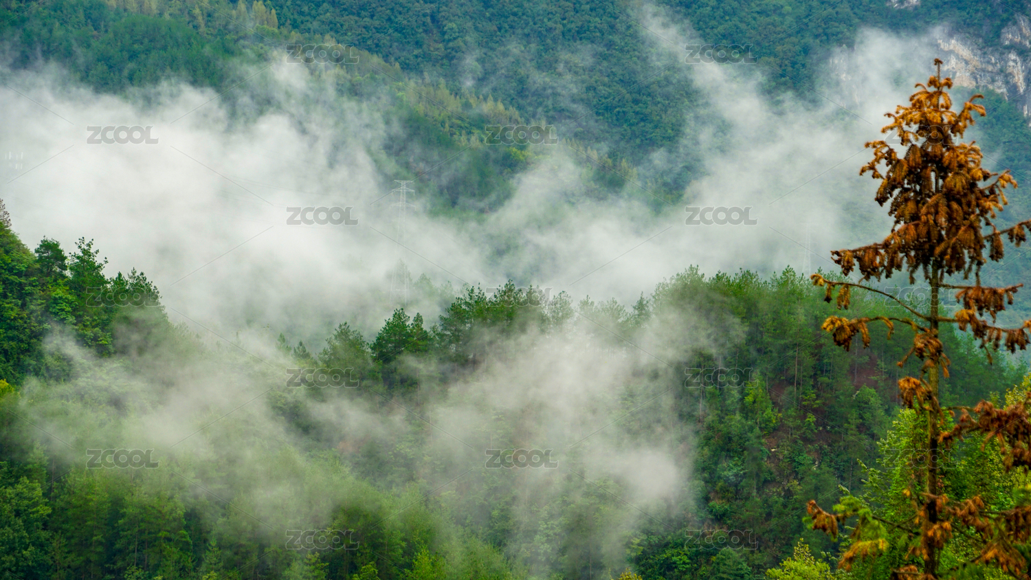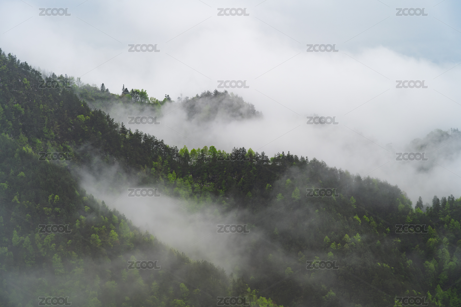 很多的青山绿树白云和白雾