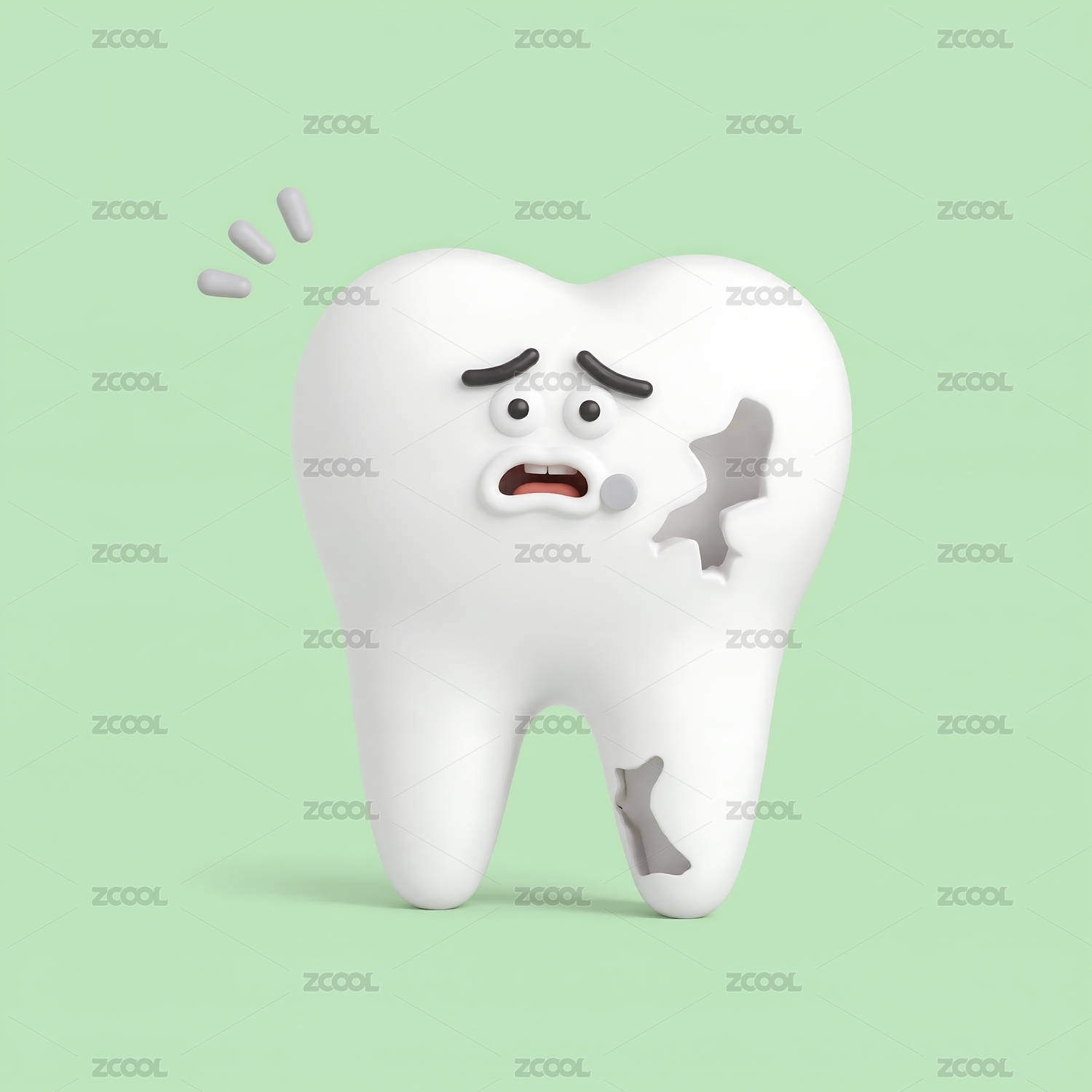 3D卡通C4D牙齿模型破损的牙齿蛀牙龋齿