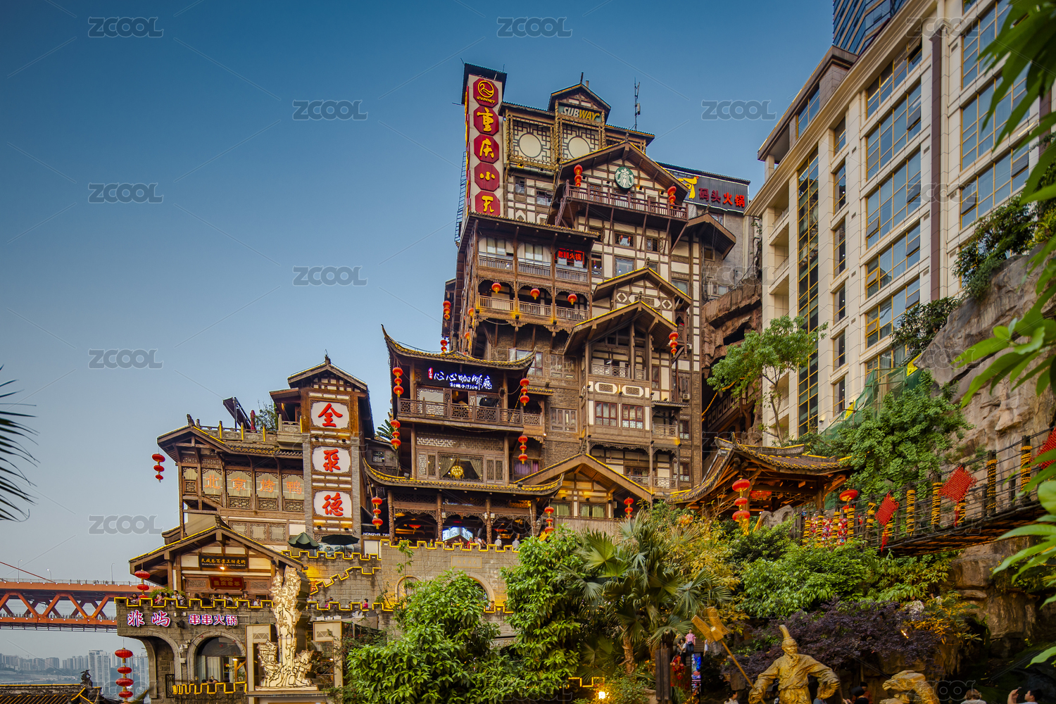 重庆洪崖洞地标建筑、旅行目的地