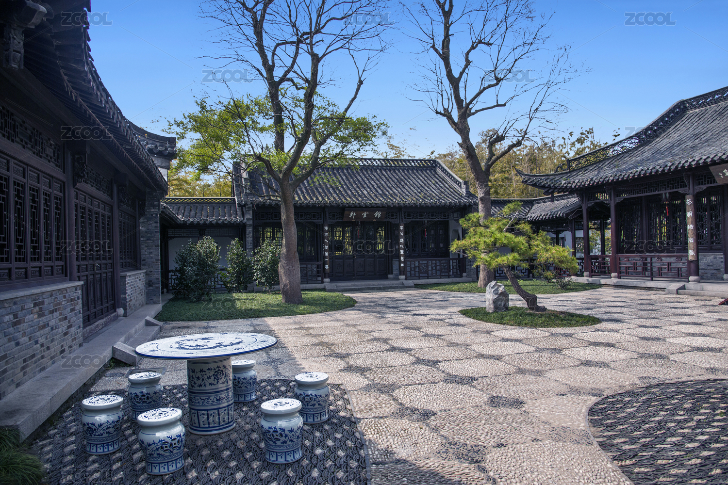 中国山西省祁县乔家堡村乔家大院园林建筑