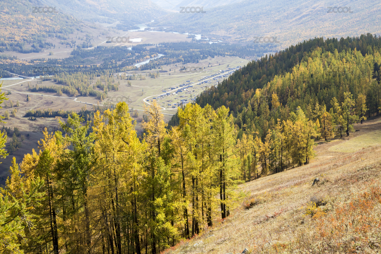 中国新疆喀纳斯风景区观鱼台秋天风光