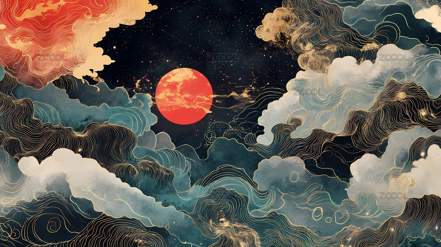 月出,日落,更迭,交换,夕阳,西下,交替,海上,明月,月亮