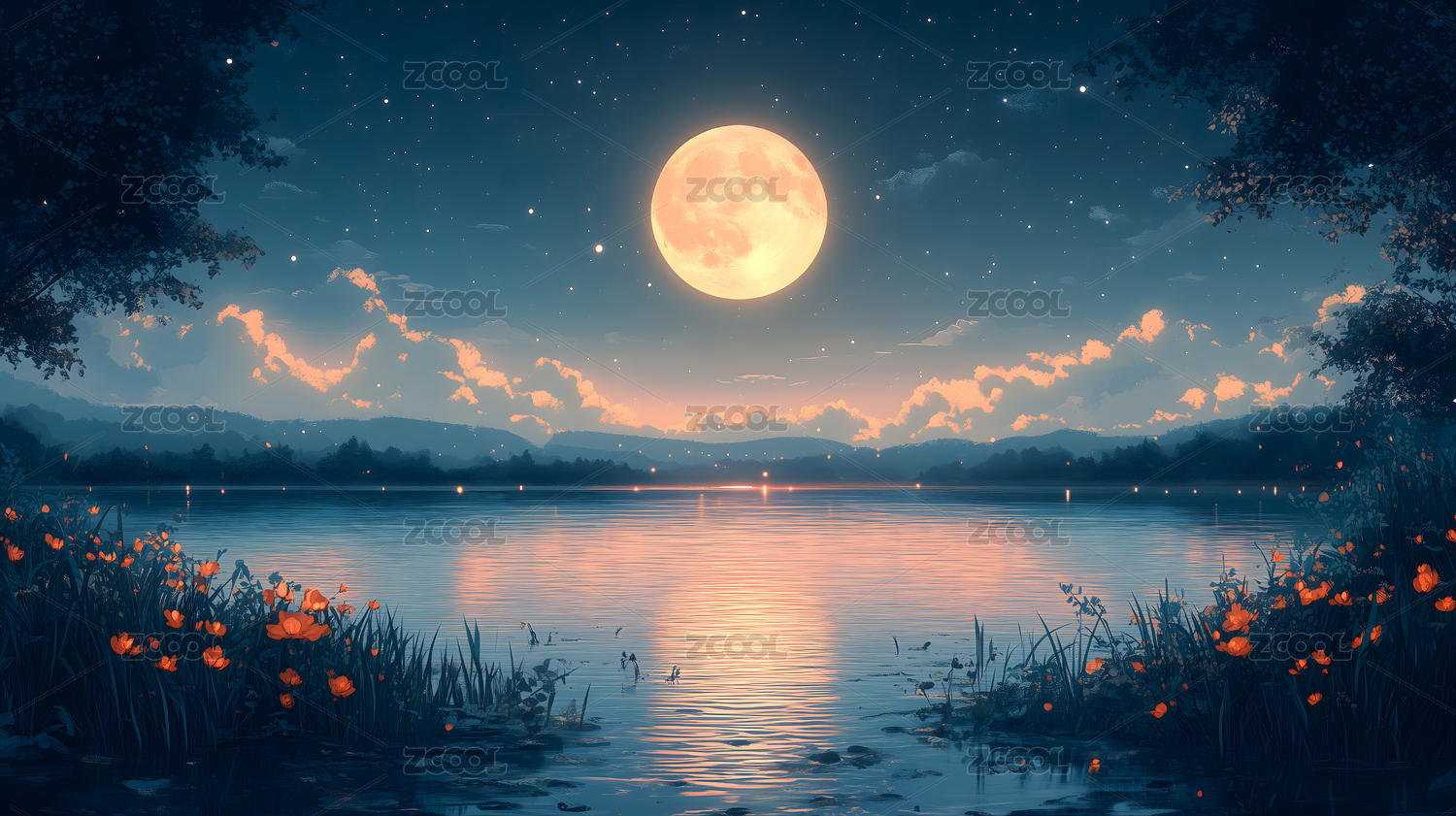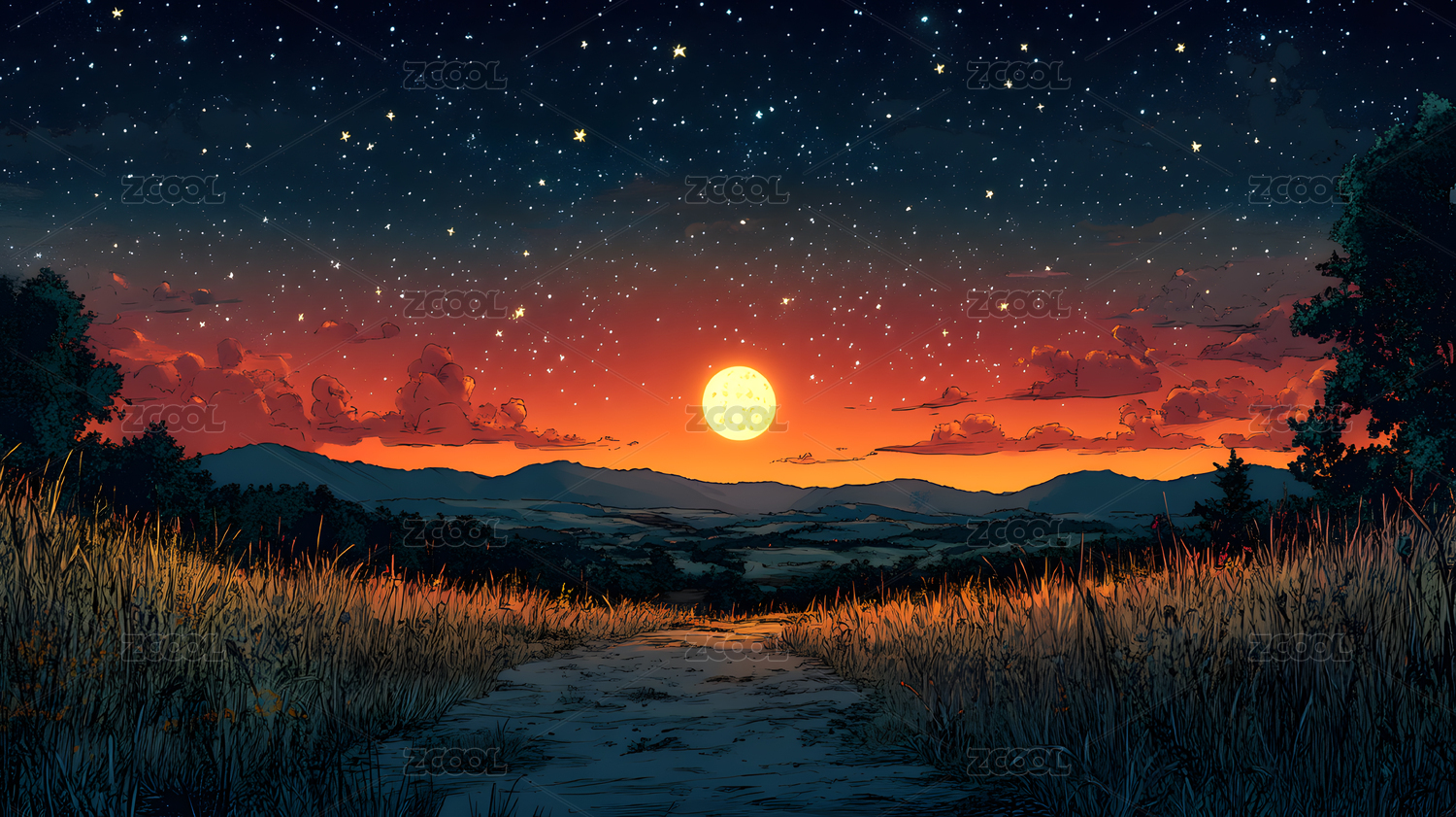 夏天傍晚自然清新治愈唯美卡通漫画AI数字