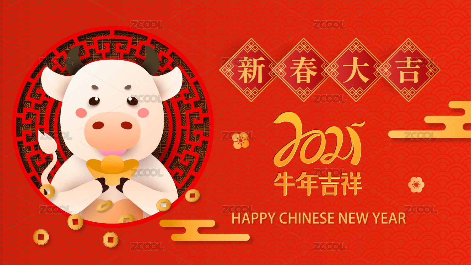 牛年,卡通,元旦,庆祝,喜庆,新春,拜年,恭喜,海报,插画