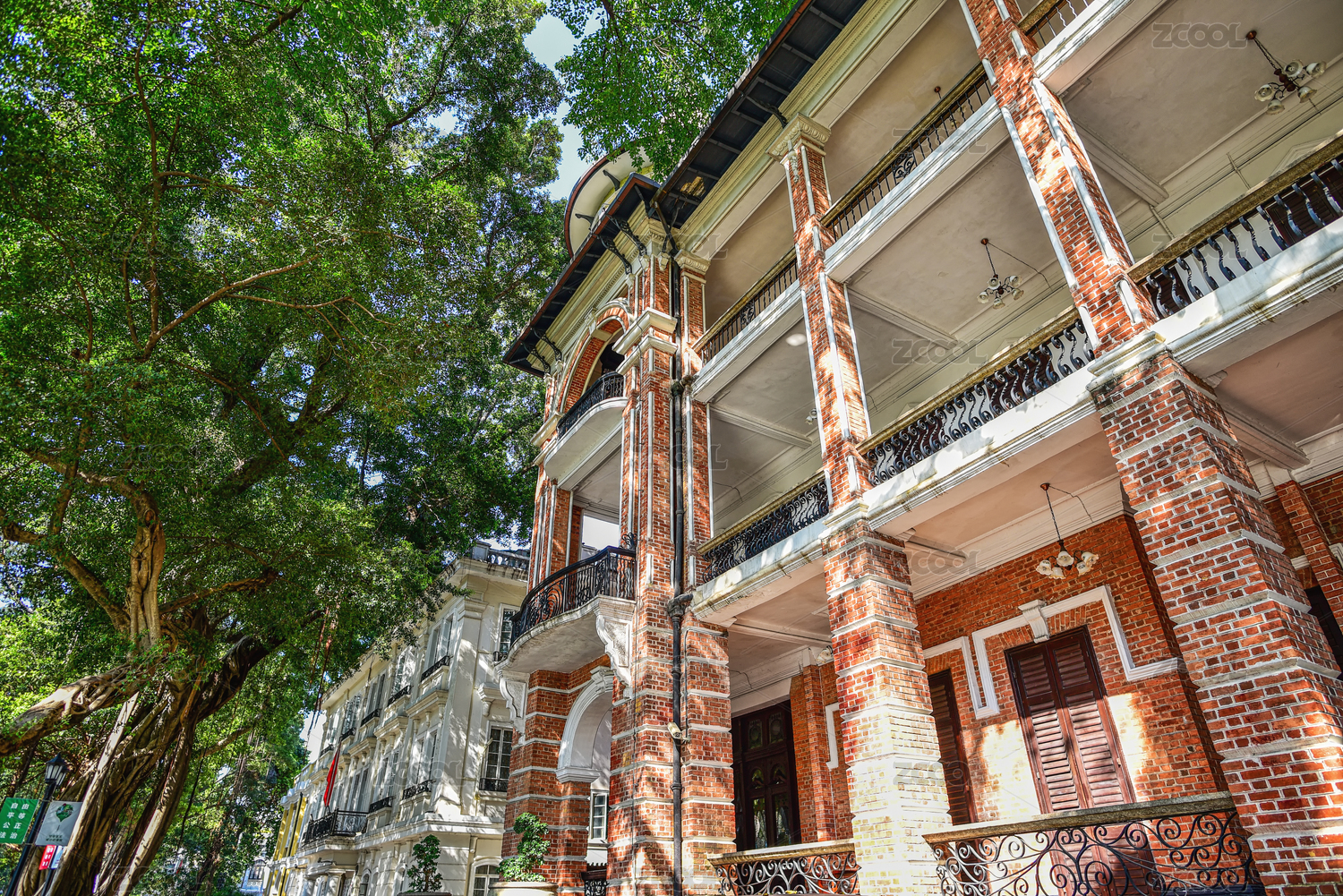 欧式建筑,沙面岛,西式建筑,沙面大街,老洋楼,欧式,广州沙面建筑,洋房,沙面老街,广州历史文化街区