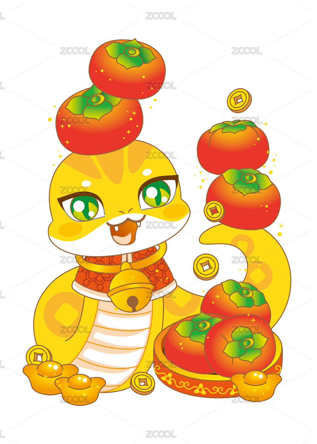 蛇年插画系列-柿柿如意