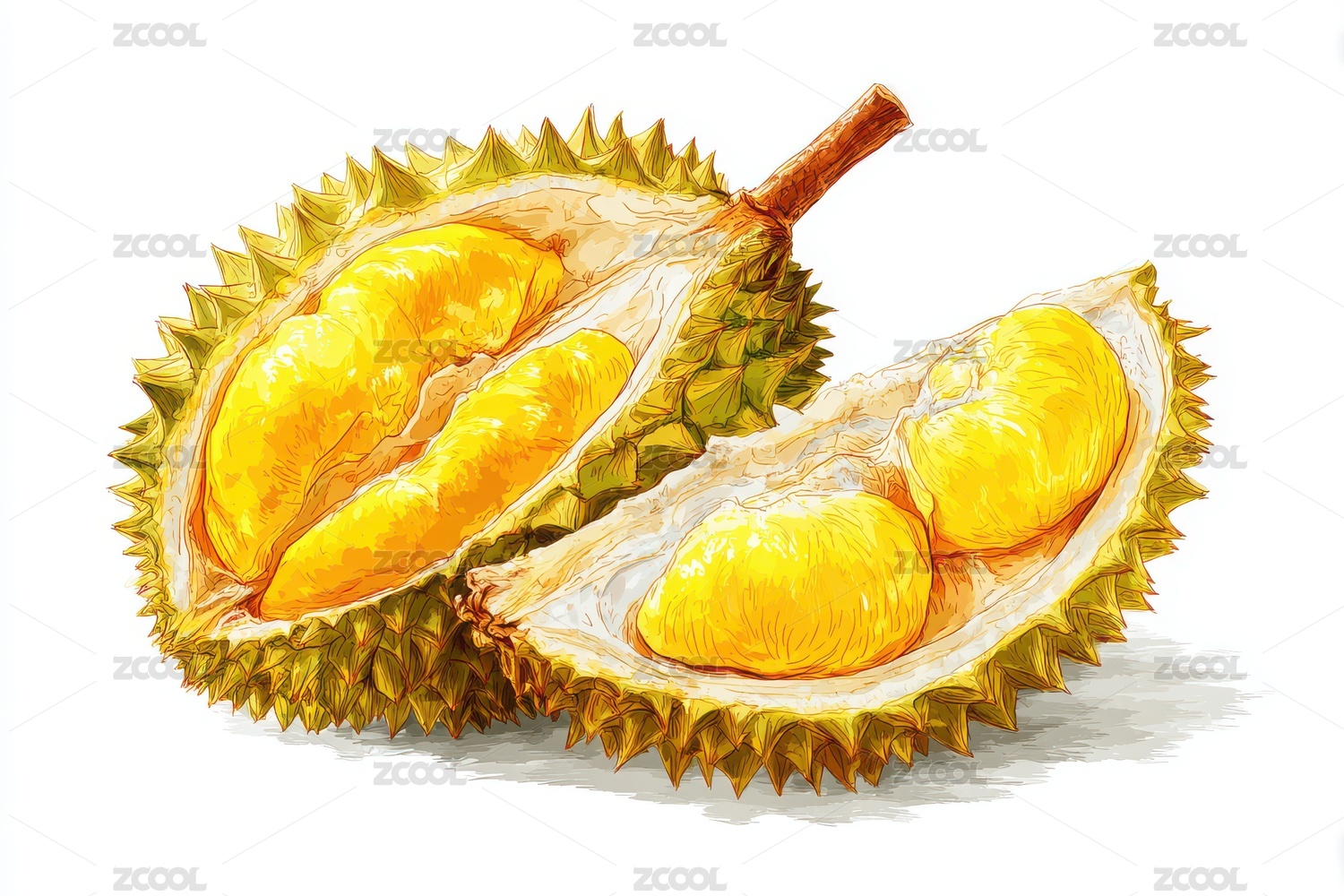 榴莲,榴莲插画,水果插画,榴莲蜜,榴莲肉,菠萝蜜,尖蜜拉,热带水果,进口榴莲,榴莲特写