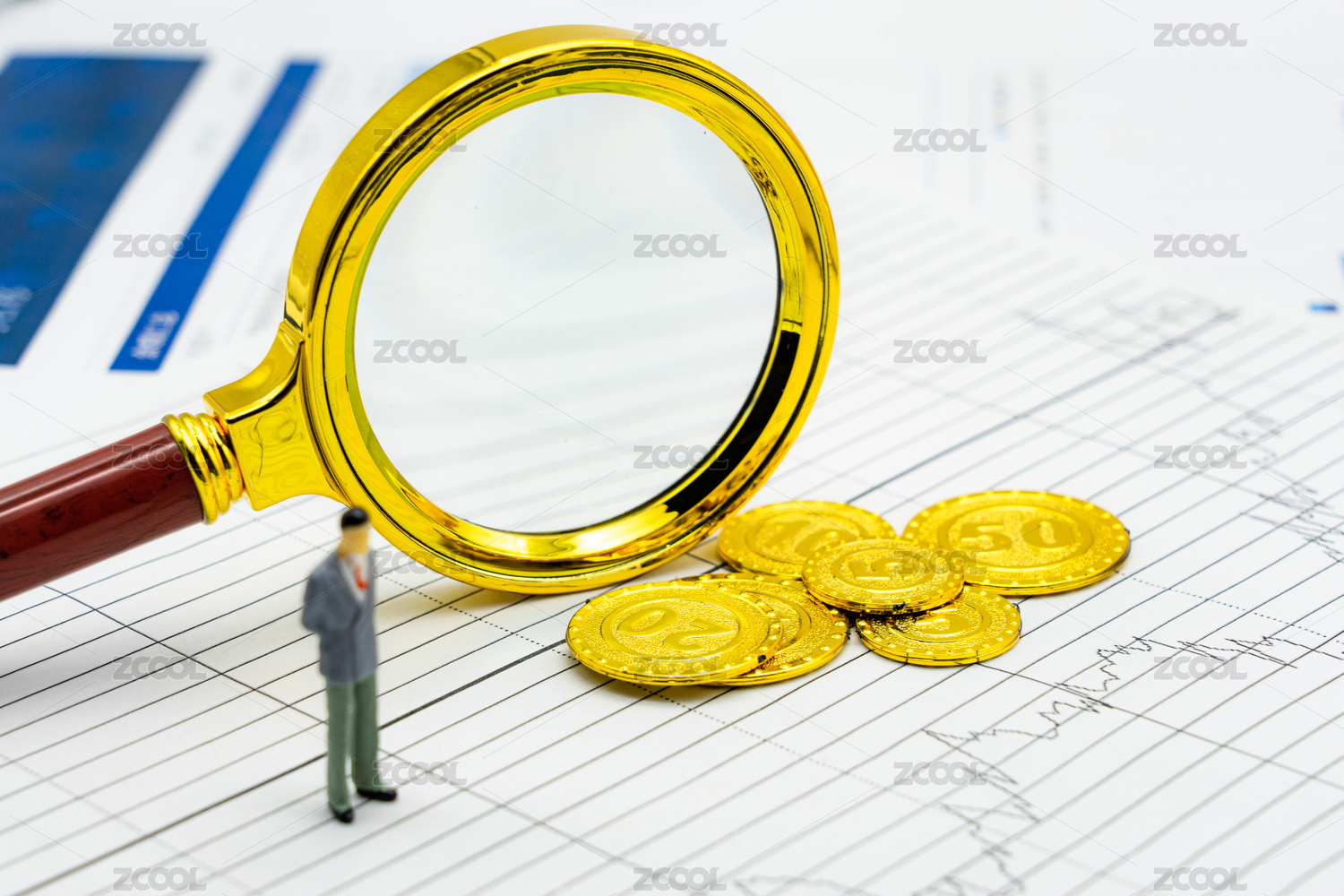 微距摄影金融经济沙盘小人放大镜理财投资概念