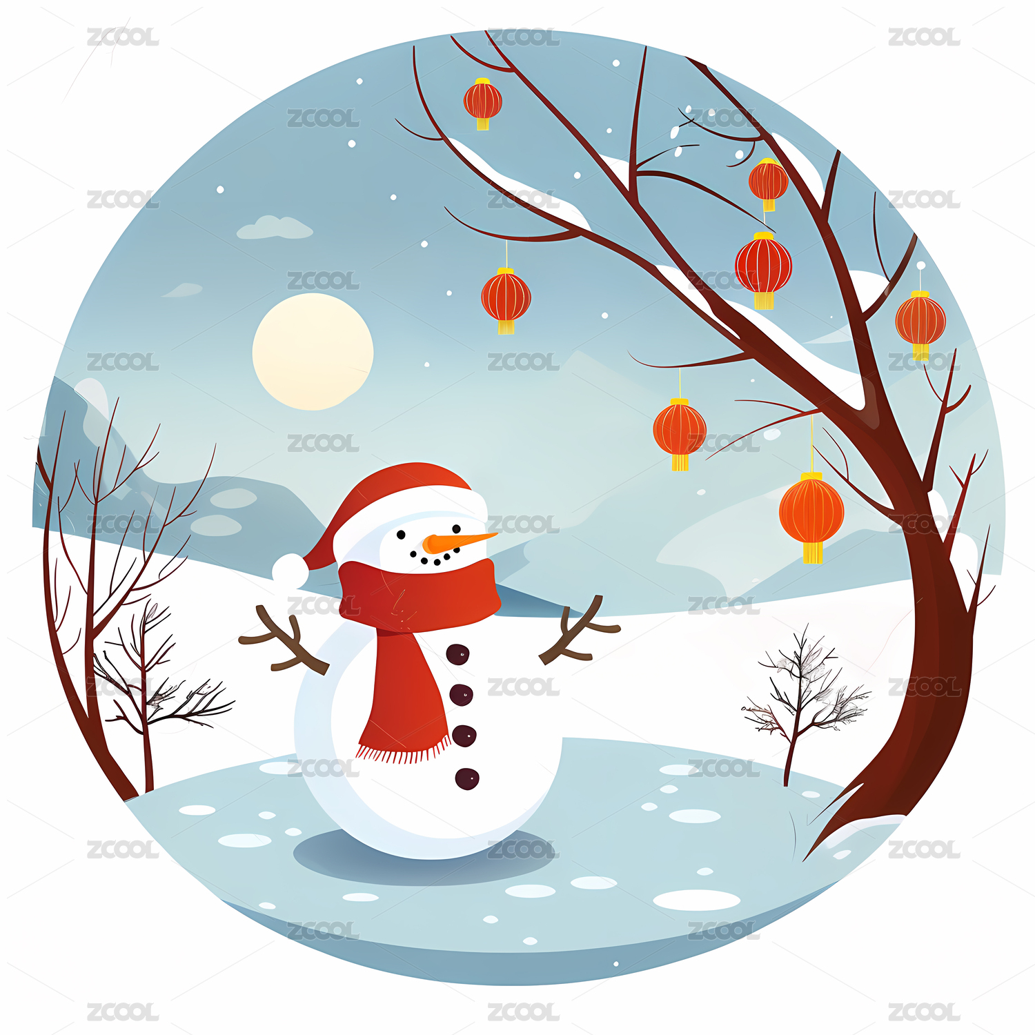 雪人,雪景,冬天,红灯笼,节日,冰雪,可爱,大雪,节气