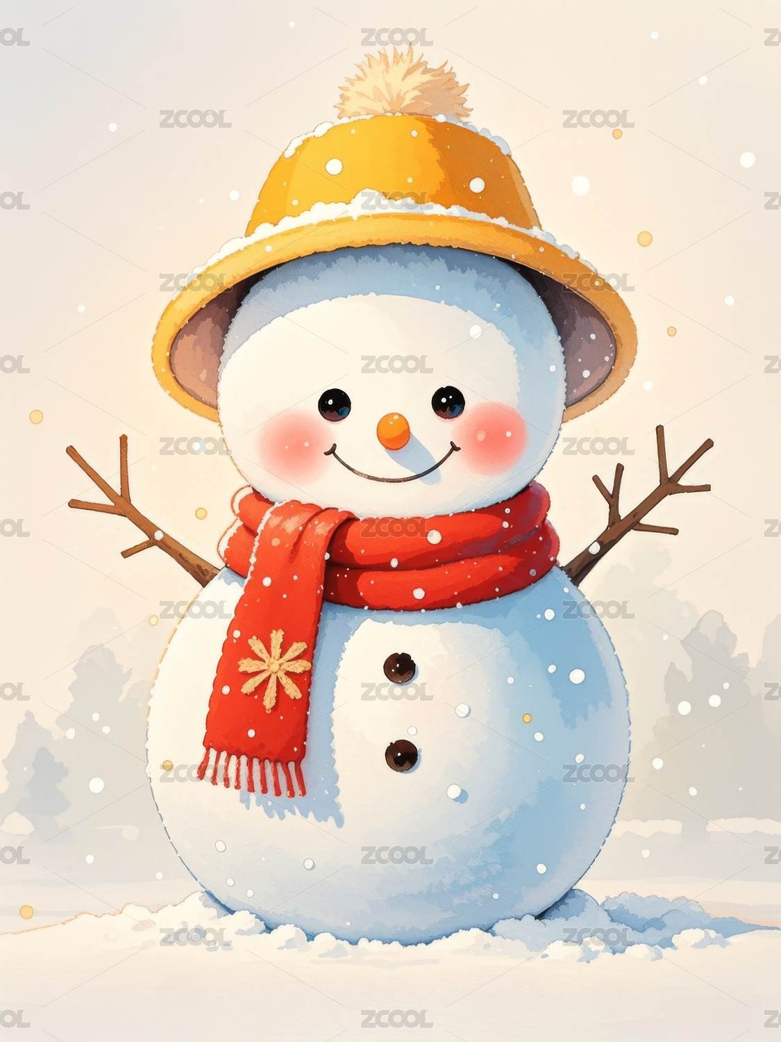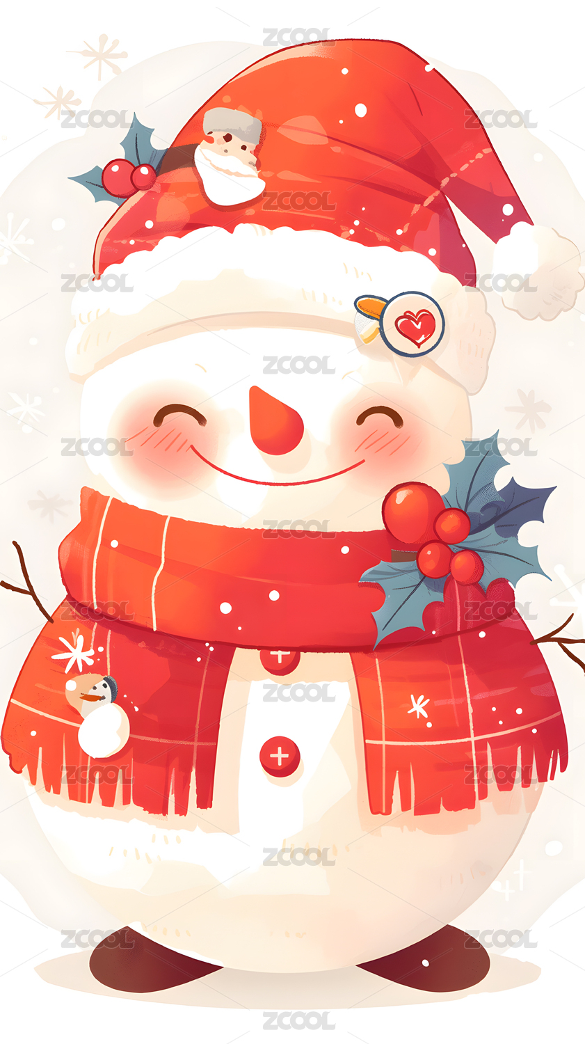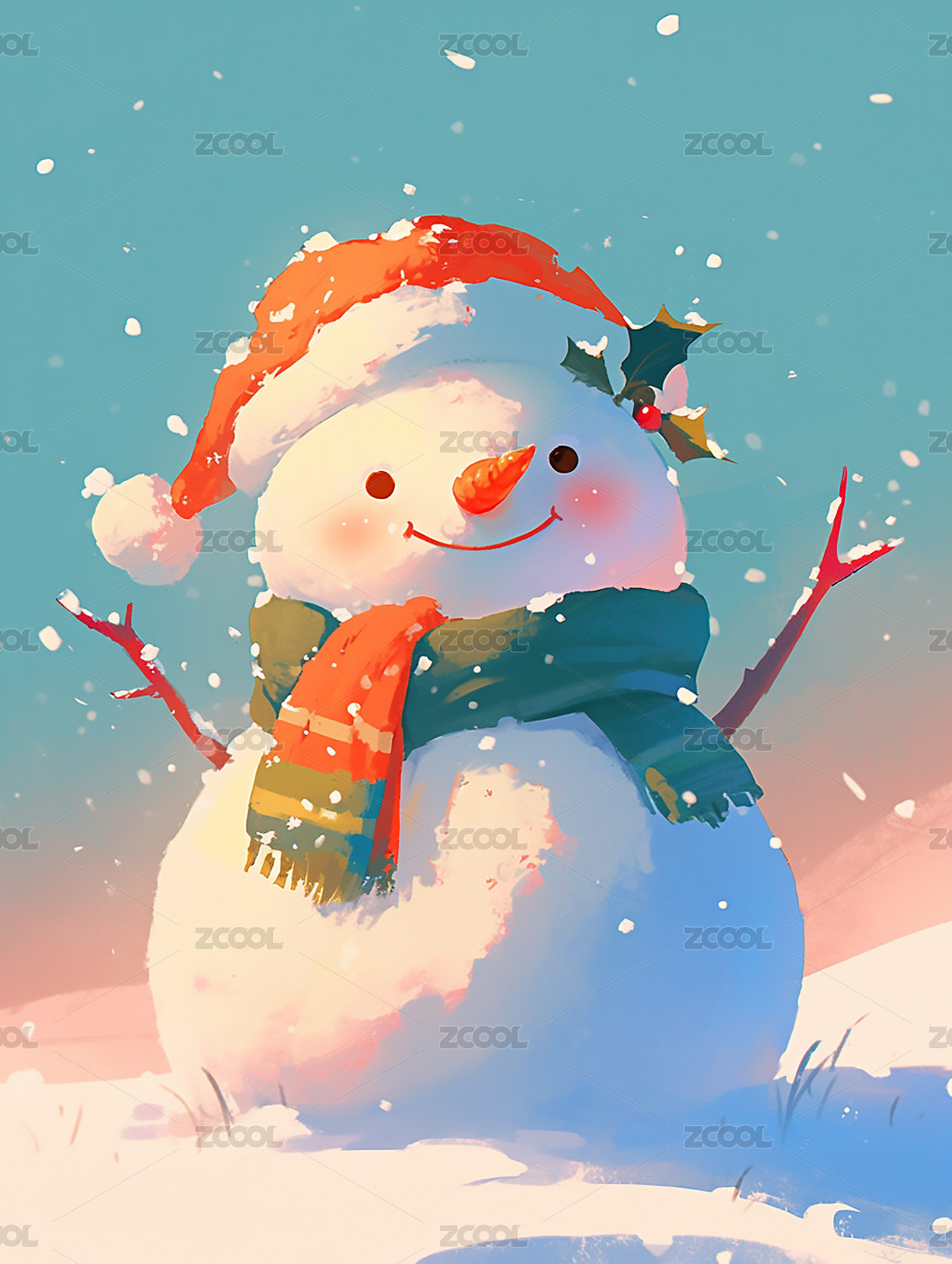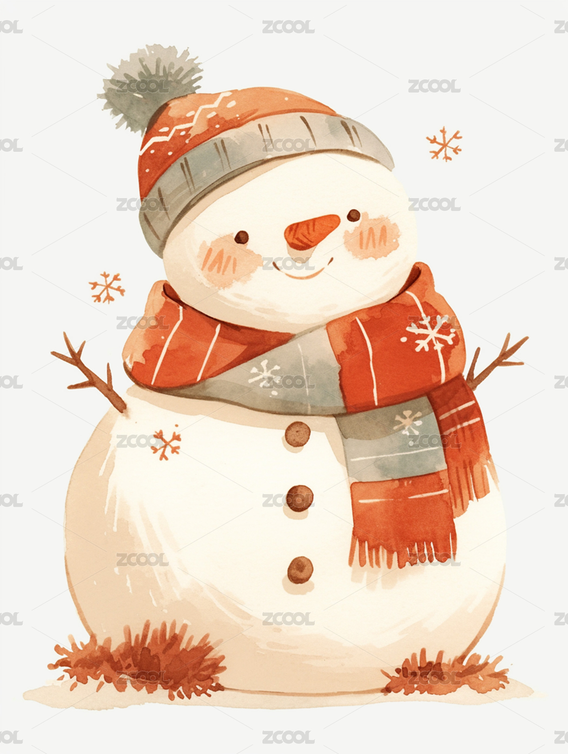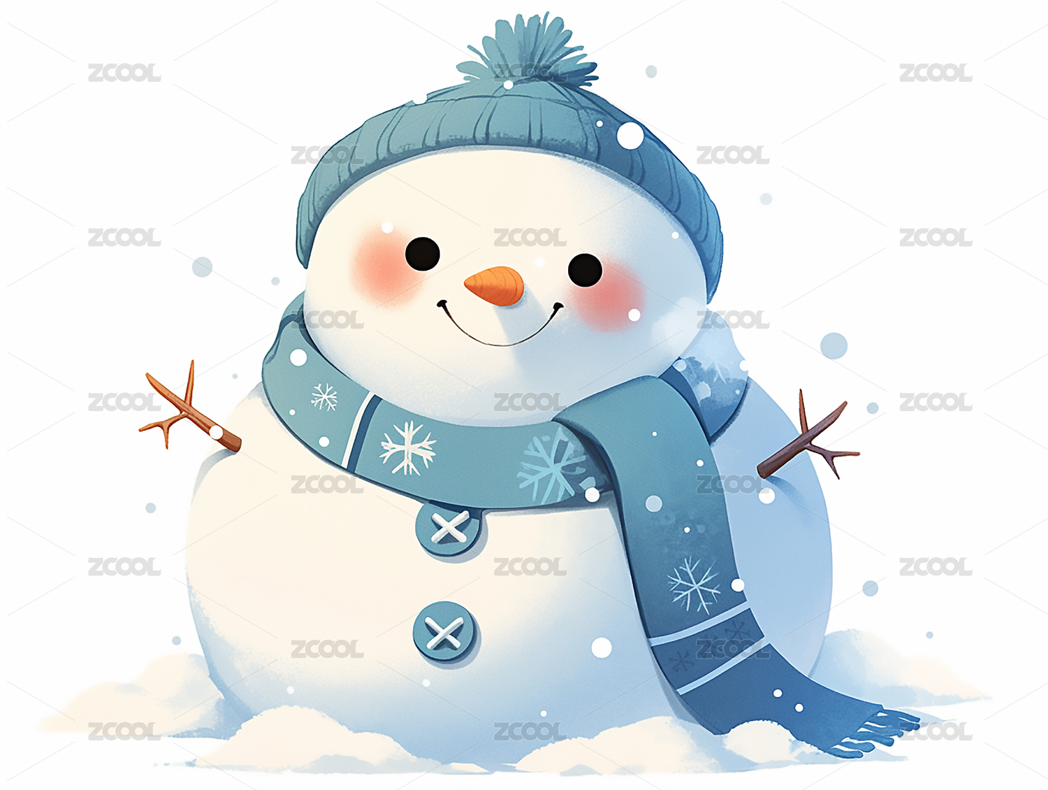 冬日小雪人卡通卡通可爱插画扁平贴纸