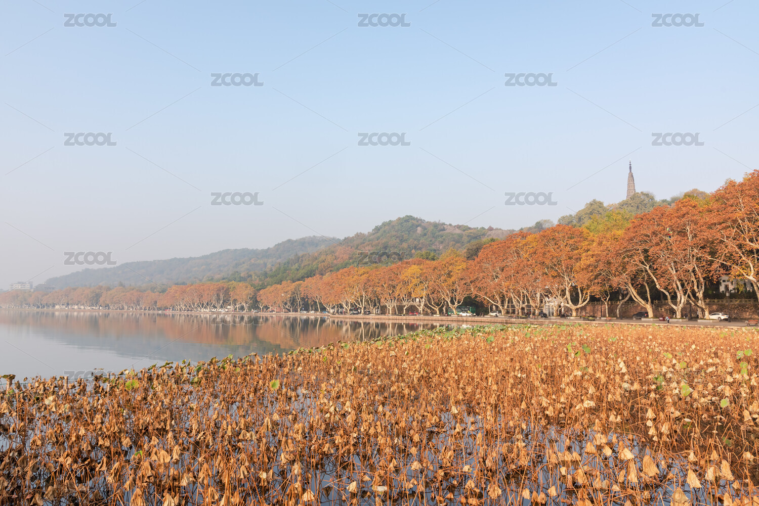 杭州西湖景区宝石山北山街与西湖残荷秋景