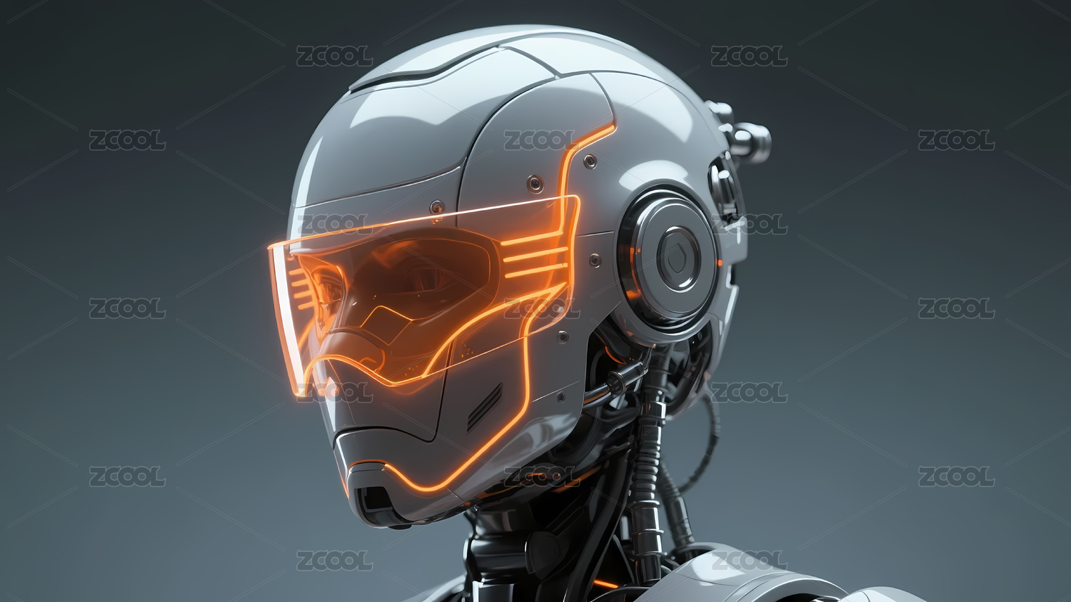 科幻风格的机器人头部特写