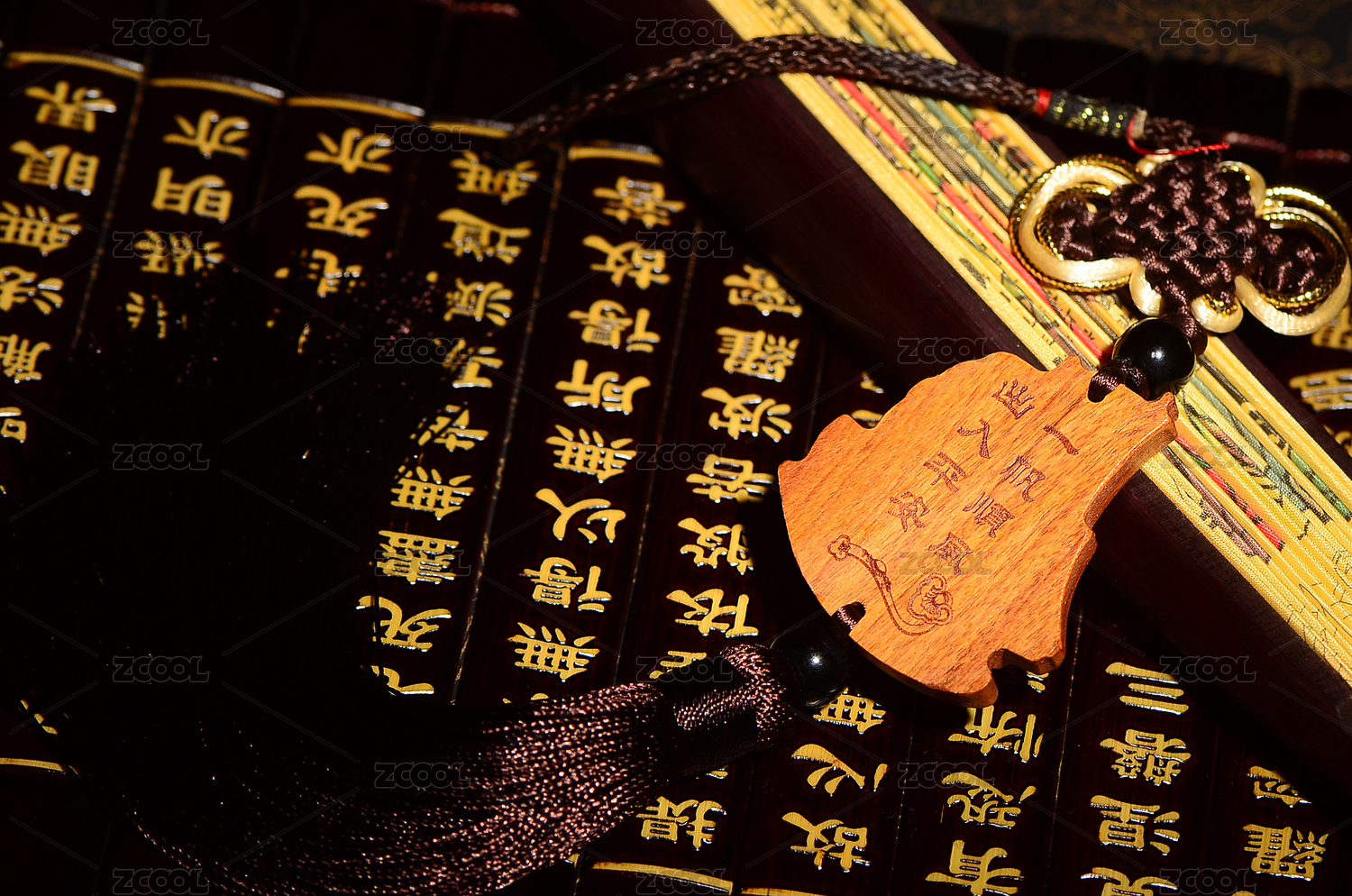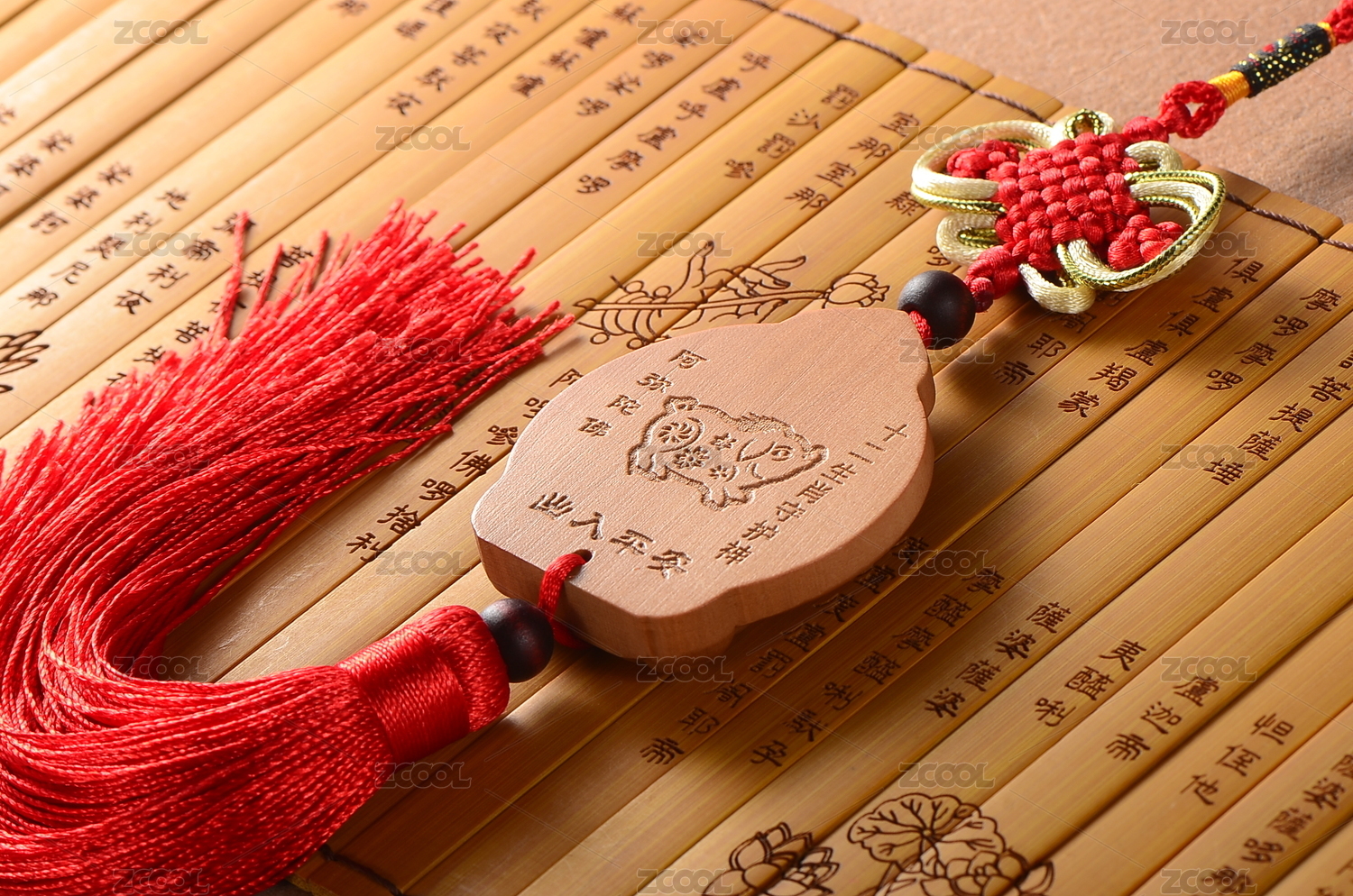 心经竹简背景上的阿弥陀佛像桃木汽车挂件