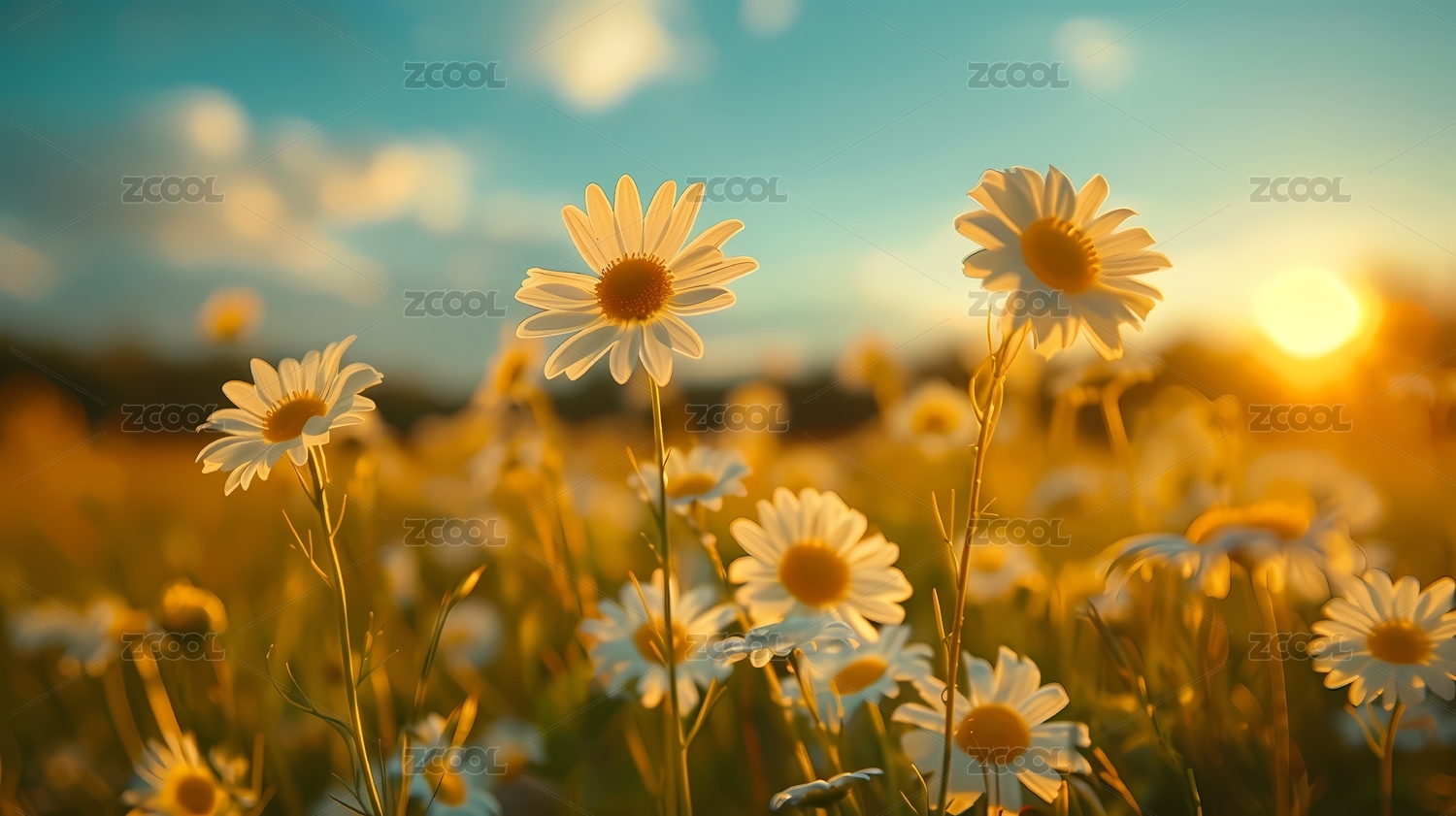 阳光照耀着盛开的花朵背景