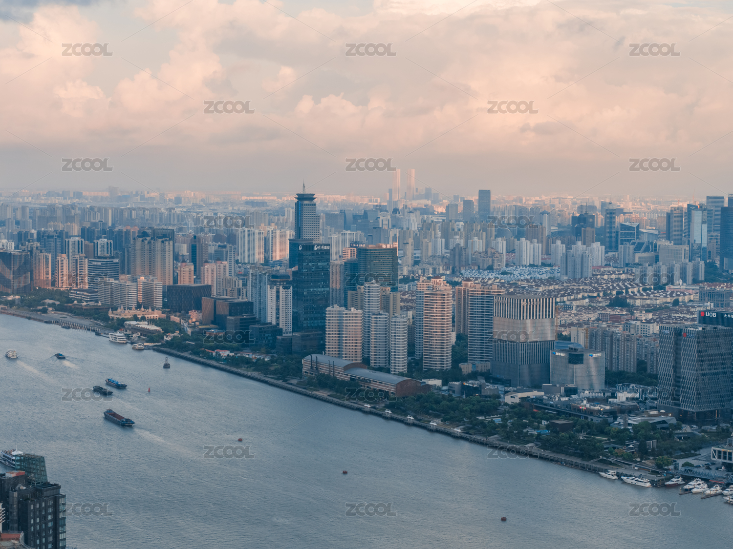 从上海北外滩高处俯瞰外滩黄浦江两岸