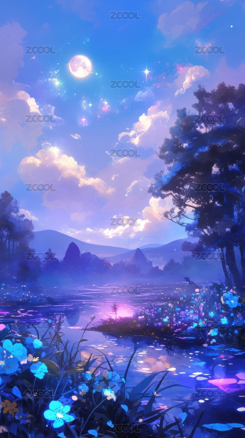 月夜湖畔繁星点点