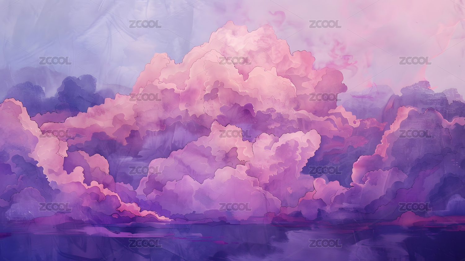 水彩风格抽象天空彩云PPT海报主视觉背景
