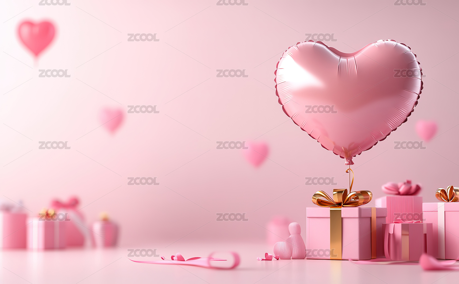 七夕情人节带气球的礼物盒展台爱情主题背景