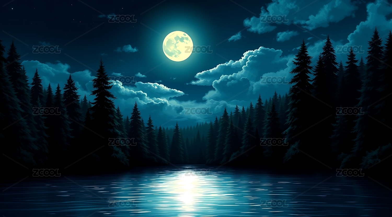 月光下的宁静湖面
