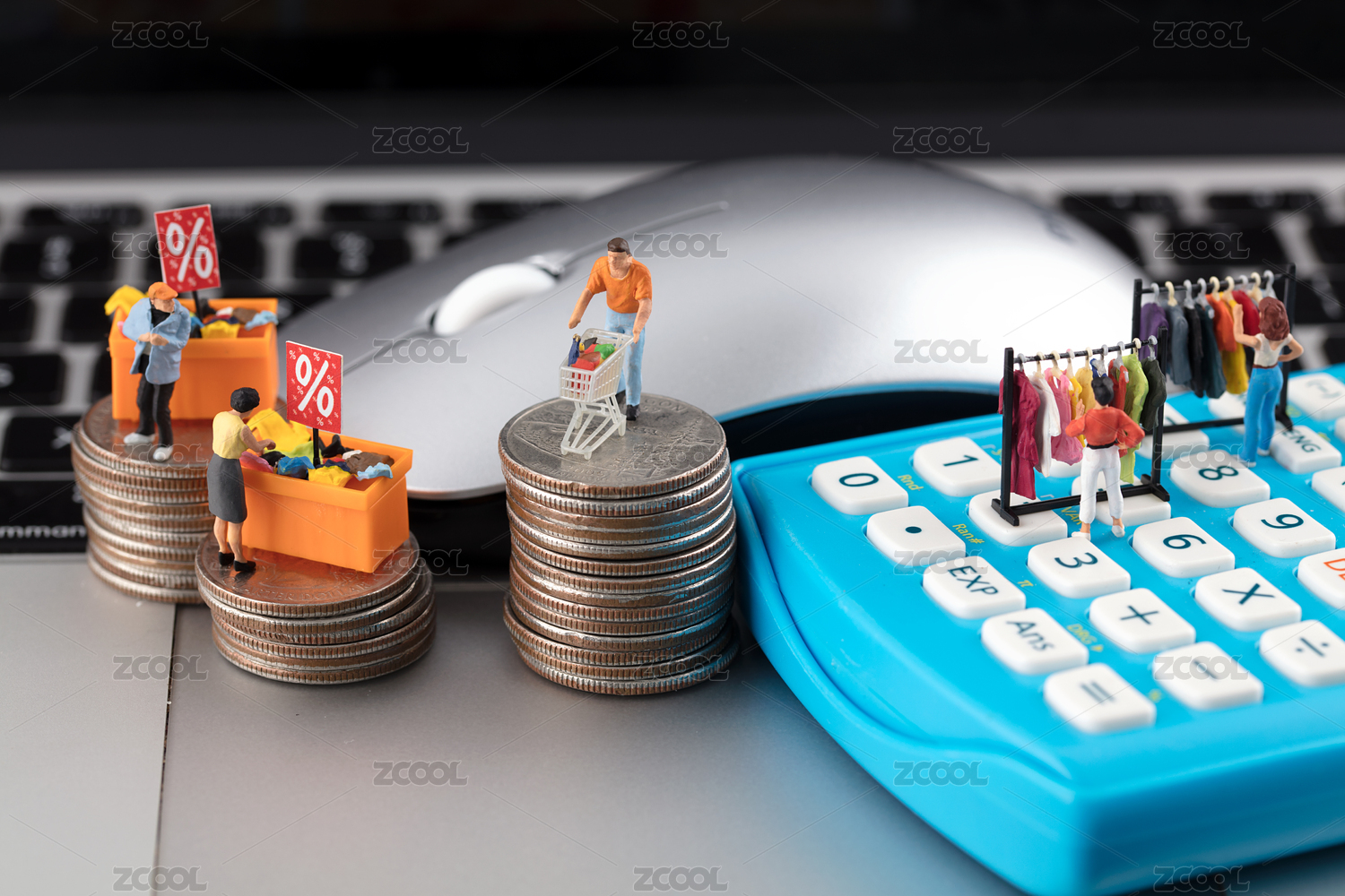 购物,购买,网购,概念,微缩,微距,微型,人偶,模型,电脑