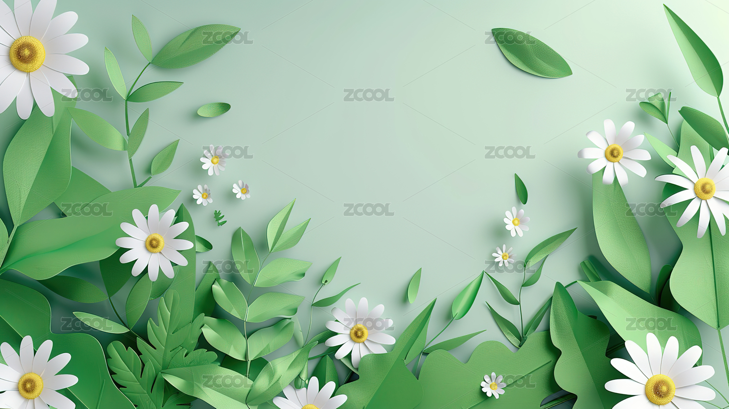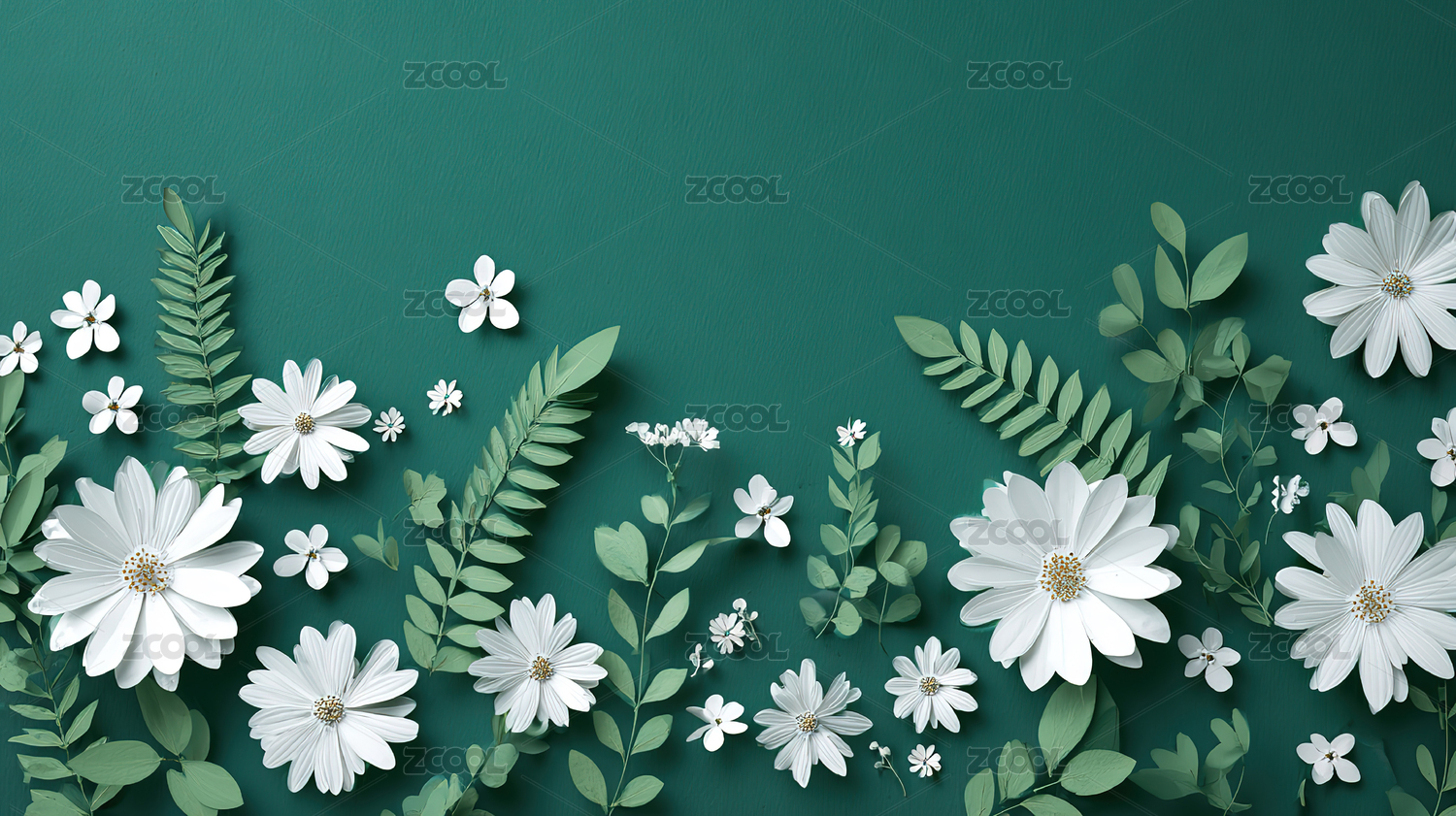 白色背景,五彩缤纷的3D卡通鲜花草坪素材