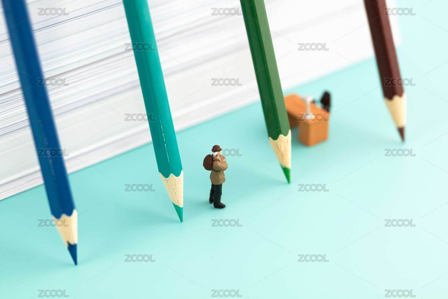 微缩创意小学的教育彩色铅笔