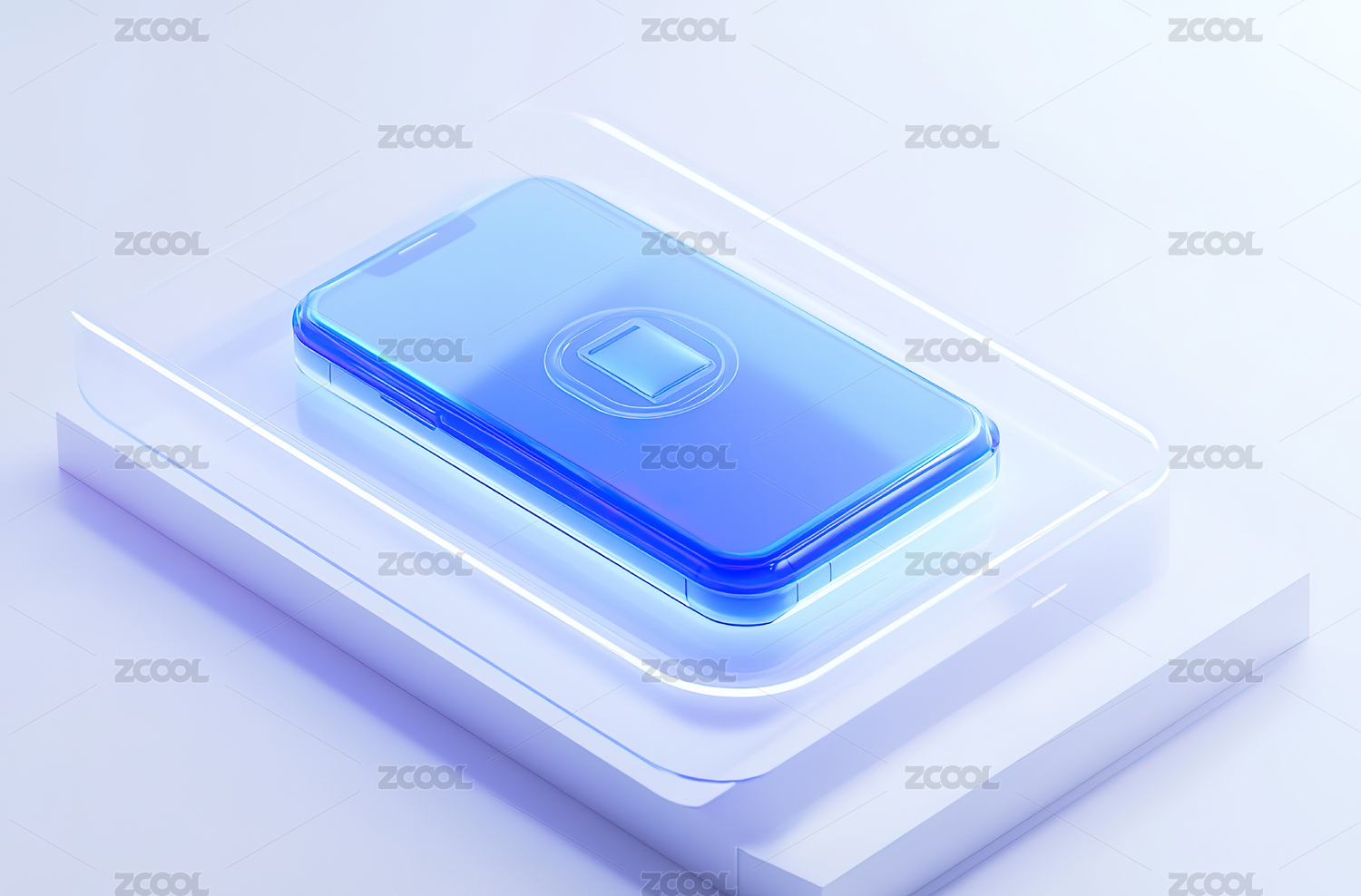 蓝色背景下的智能手机和蓝色背景的高角度视