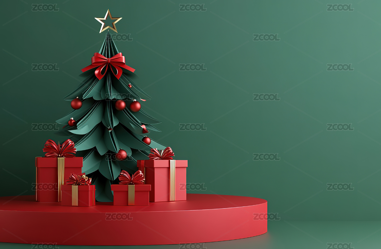 绿色背景圣诞树与礼物盒
