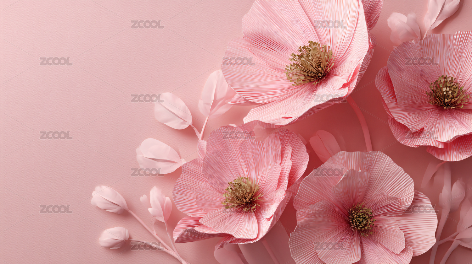 粉色纸艺樱花唯美装饰场景图