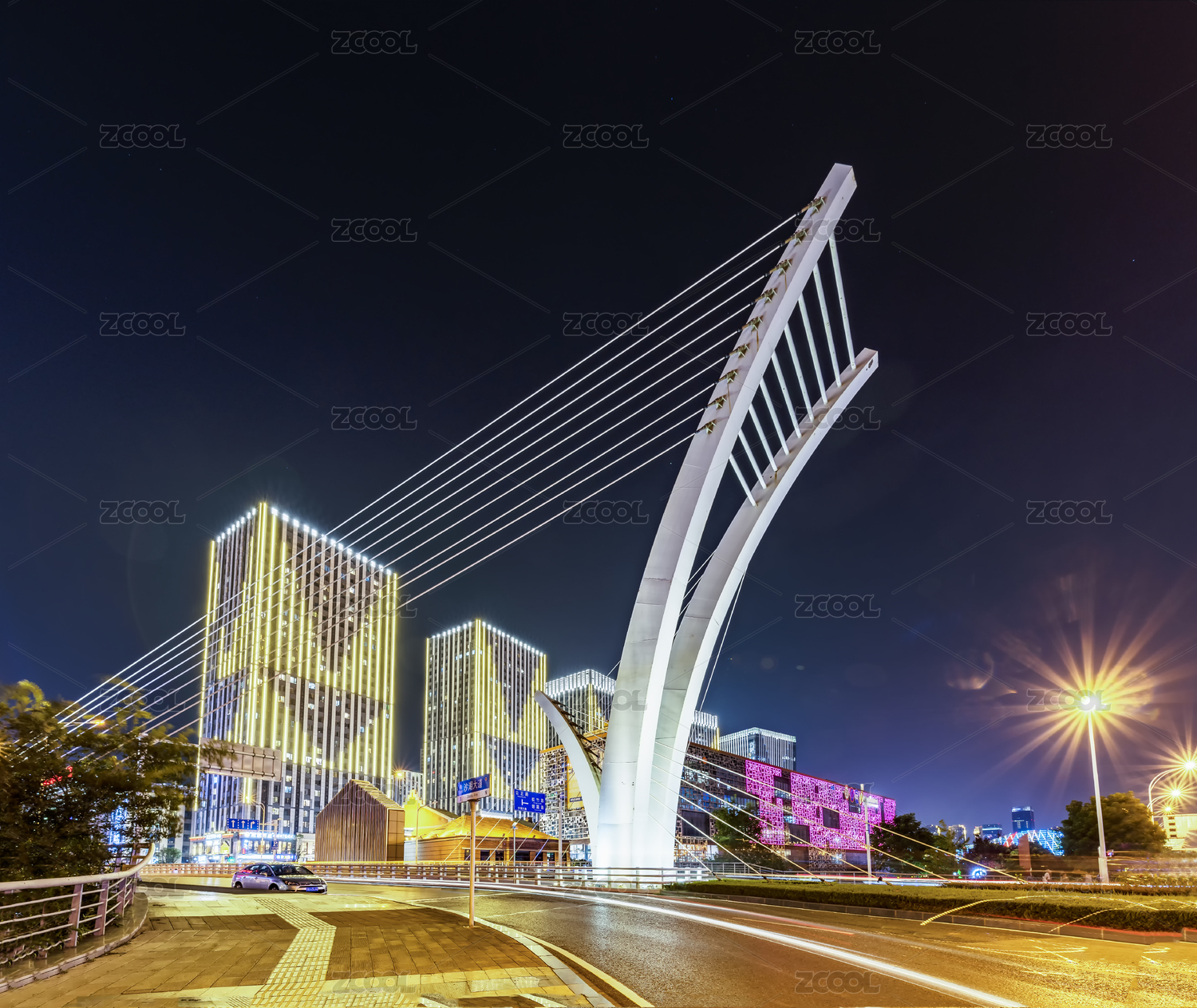 中国广东省深圳市图书馆和音乐厅夜晚风光