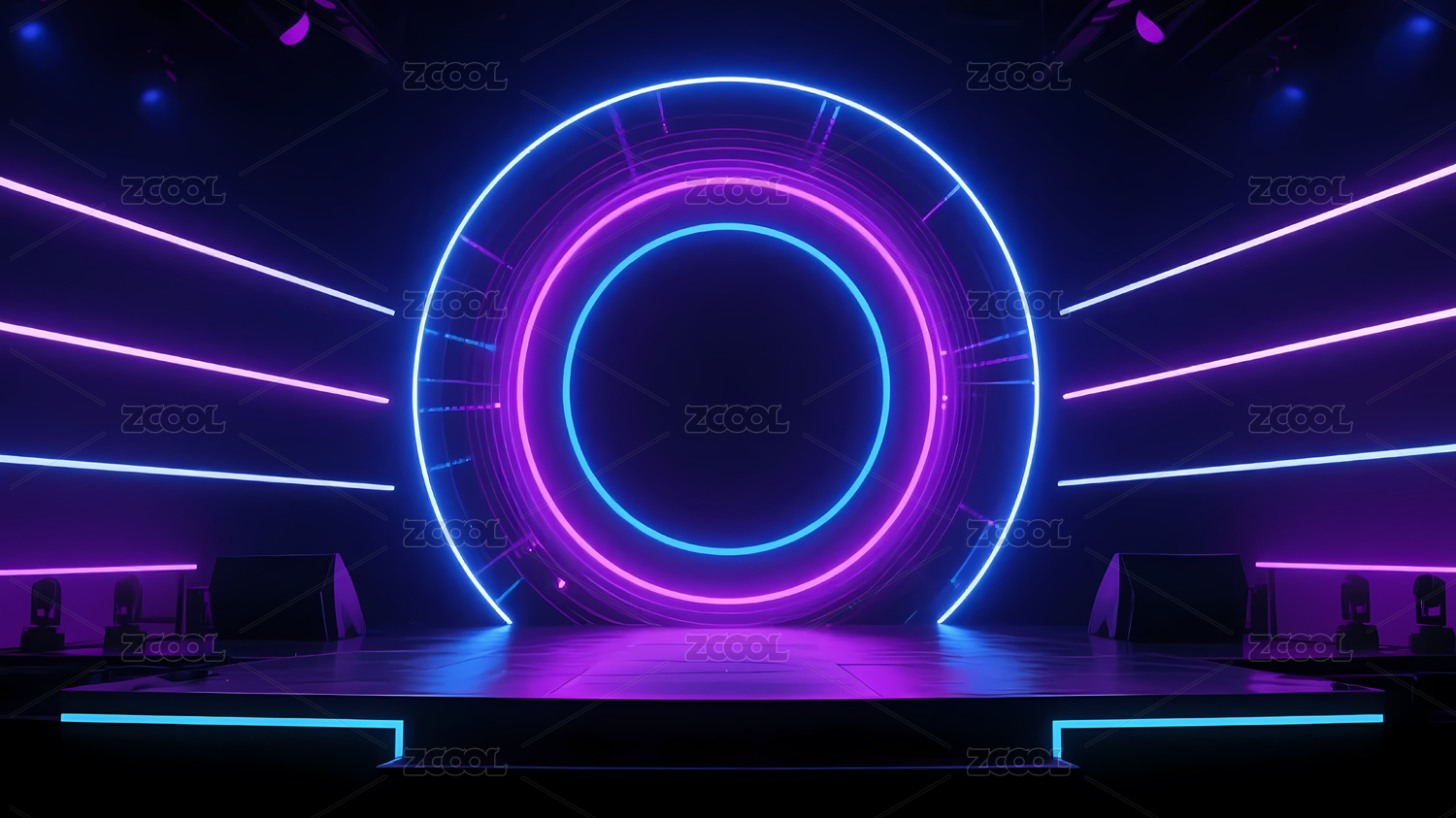 抽象霓虹灯矩阵科技感舞台赛博朋克3D插图