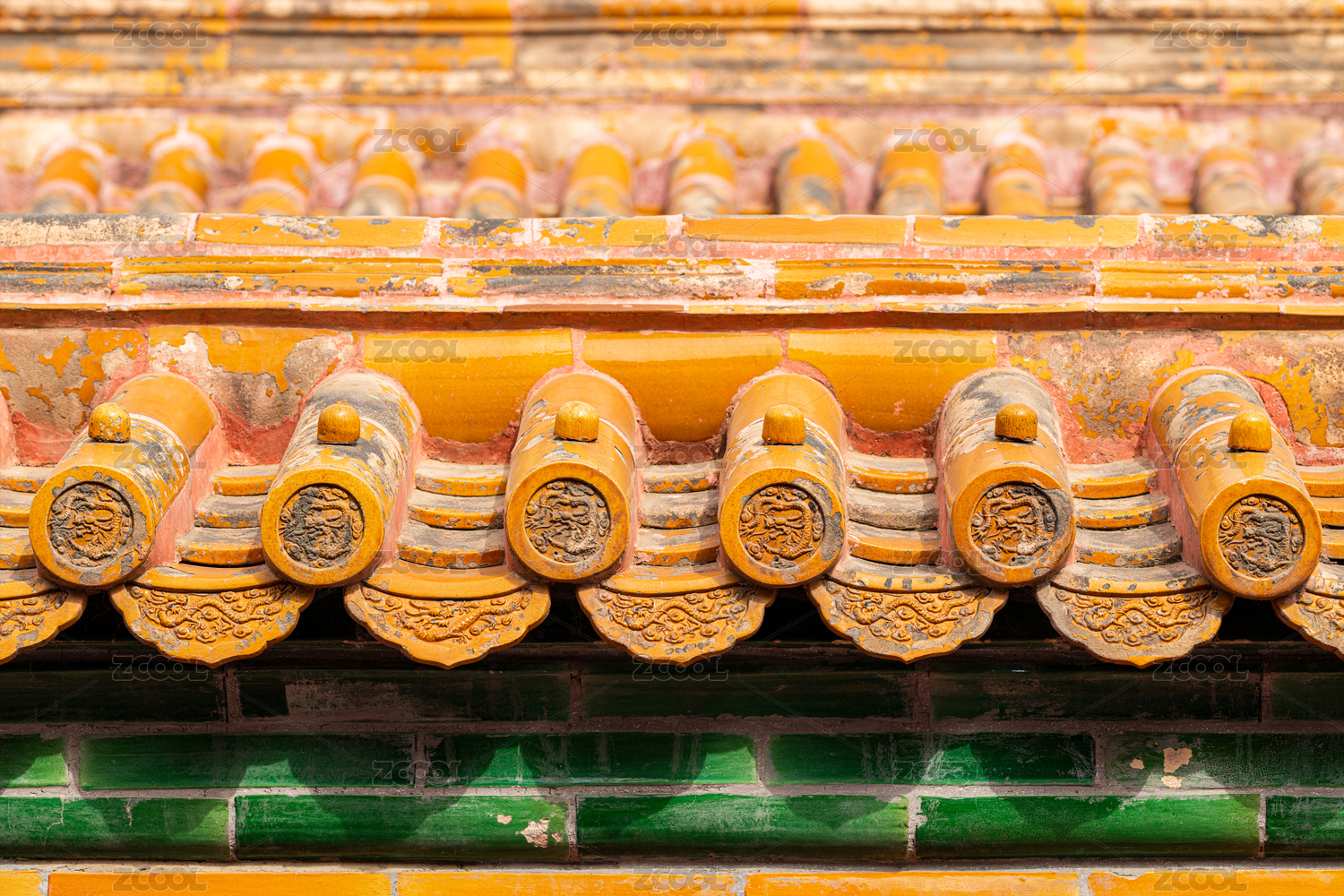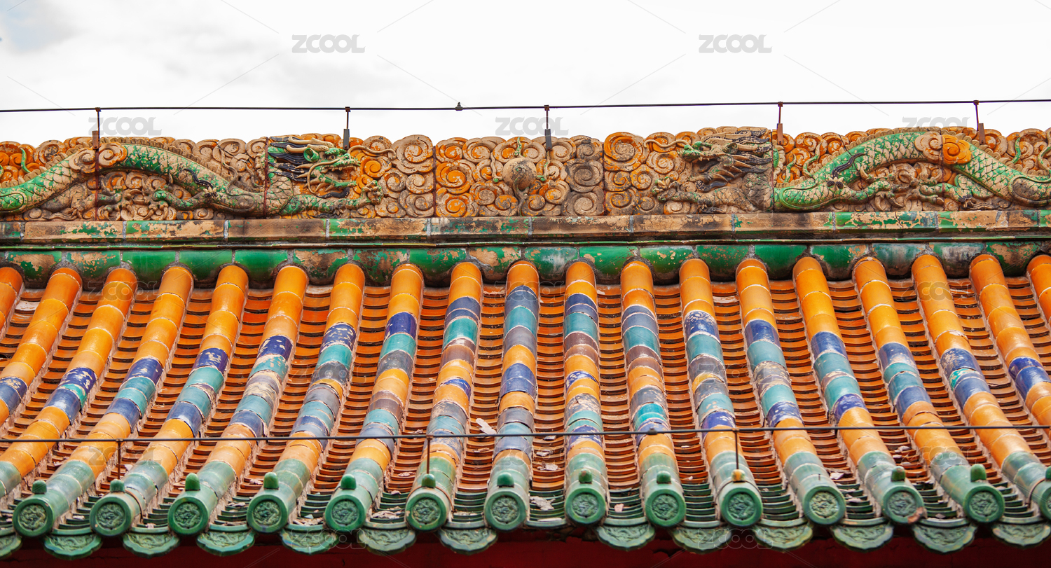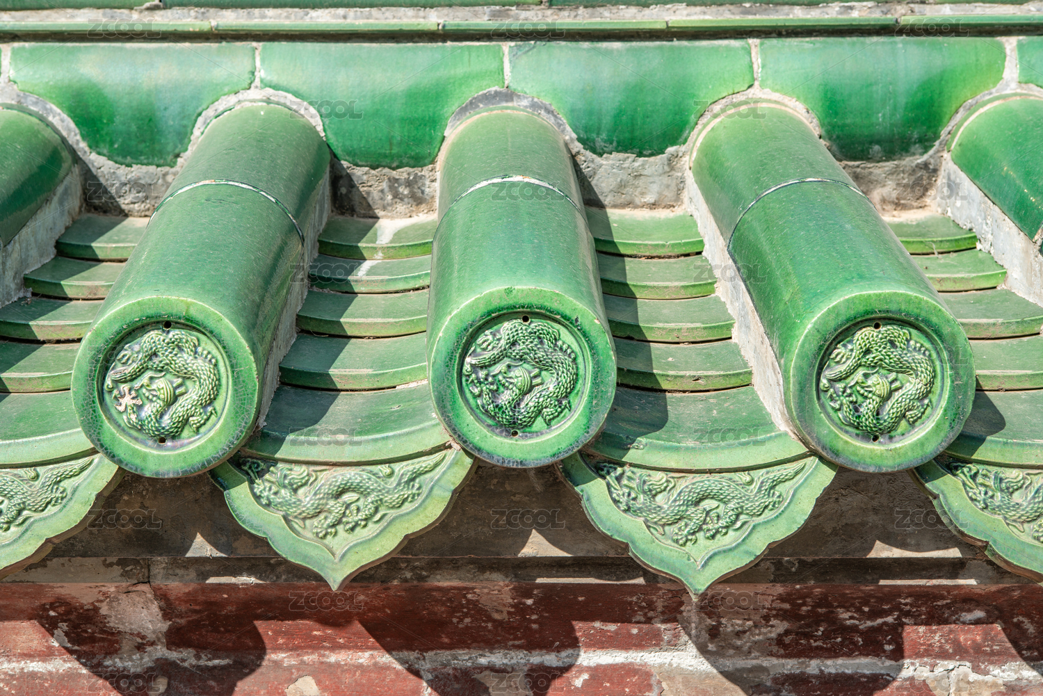 天坛公园琉璃瓦房顶上藏在脊兽后边的松鼠