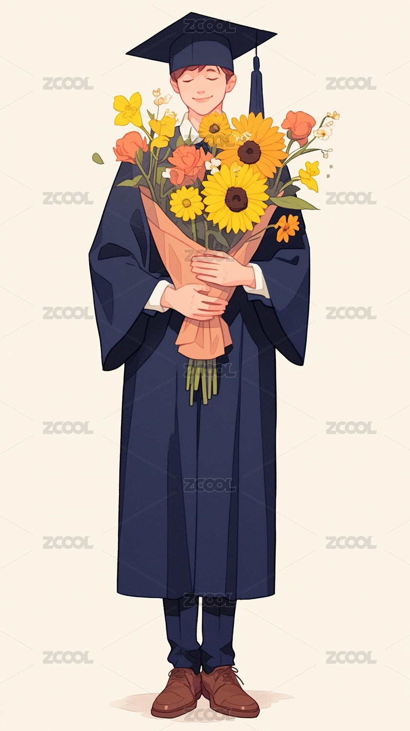 插画,毕业生,毕业季,青春,学生,花束,毕业,学位服,学位帽,女孩