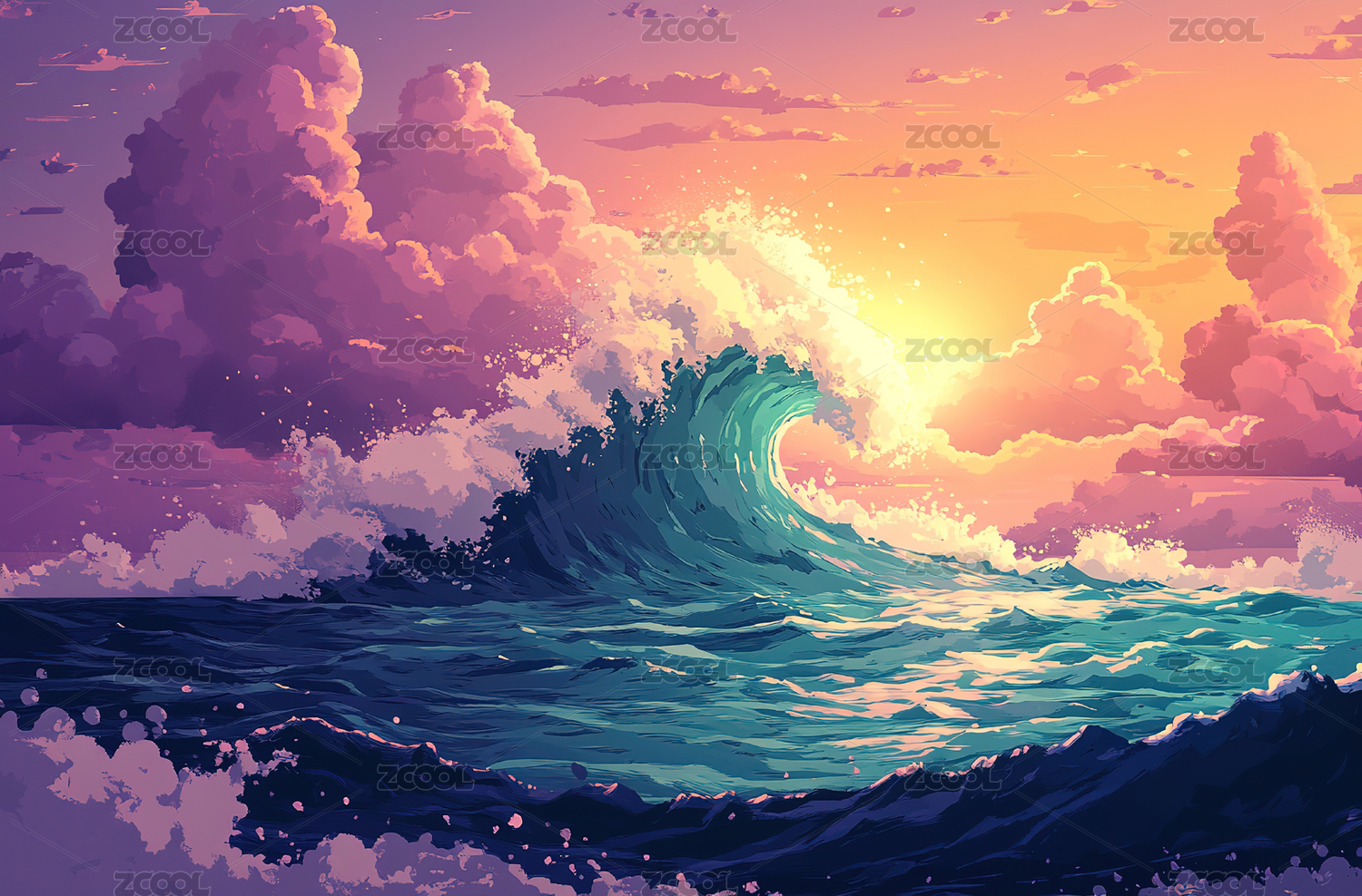 立夏节气海边冲浪插画,夏天海浪户外活动场