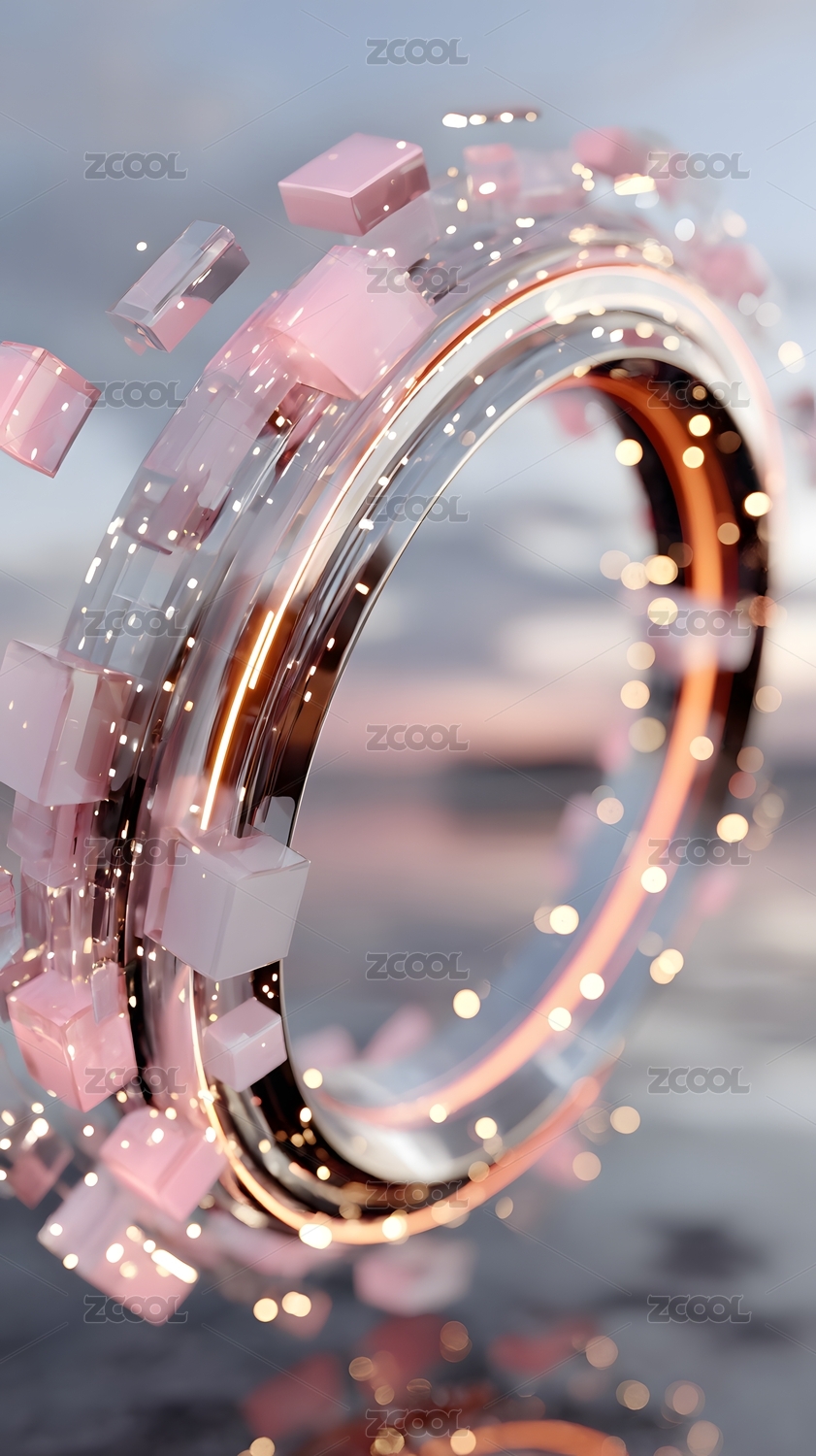 粉色立方体环绕的发光圆环