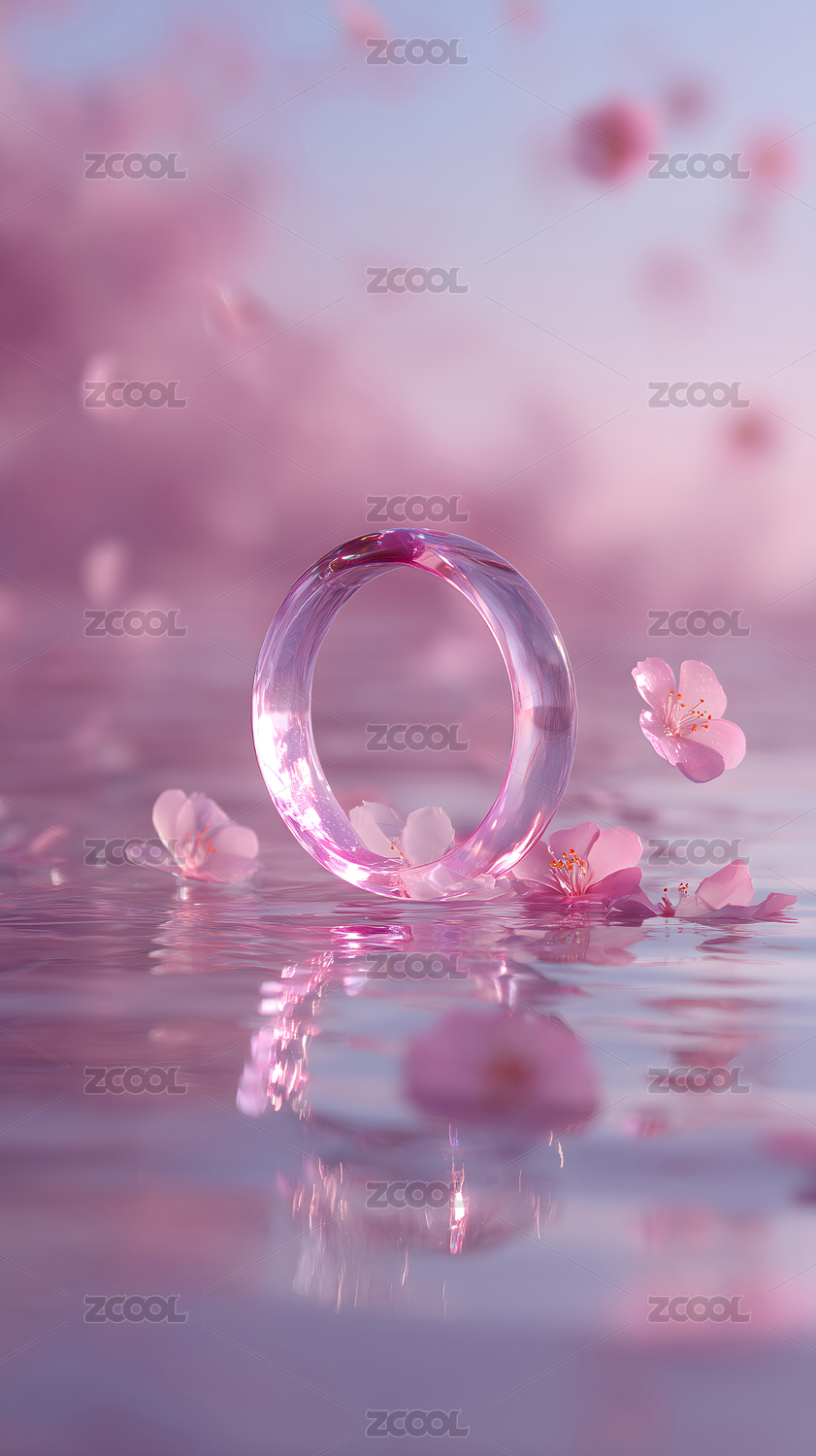 3D渲染玻璃质感戒指项链