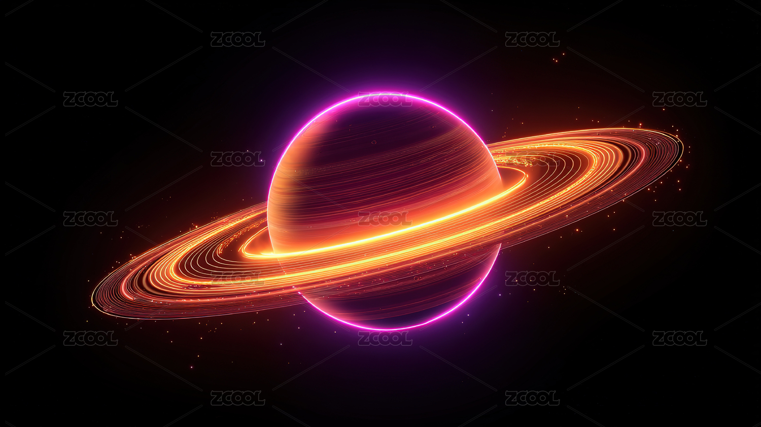 霓虹光环环绕的神秘星球