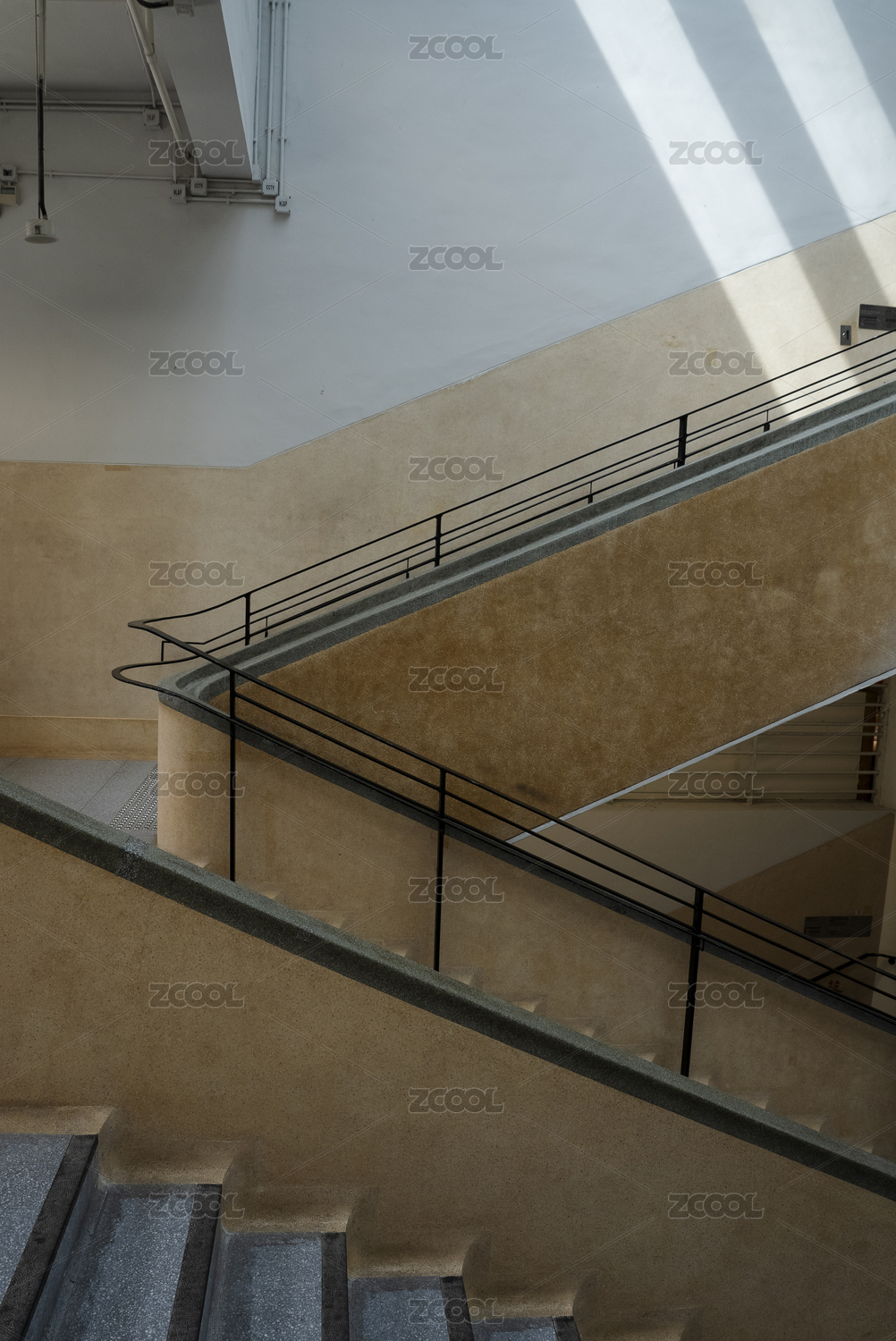 香港中环街市光影交错的现代楼梯