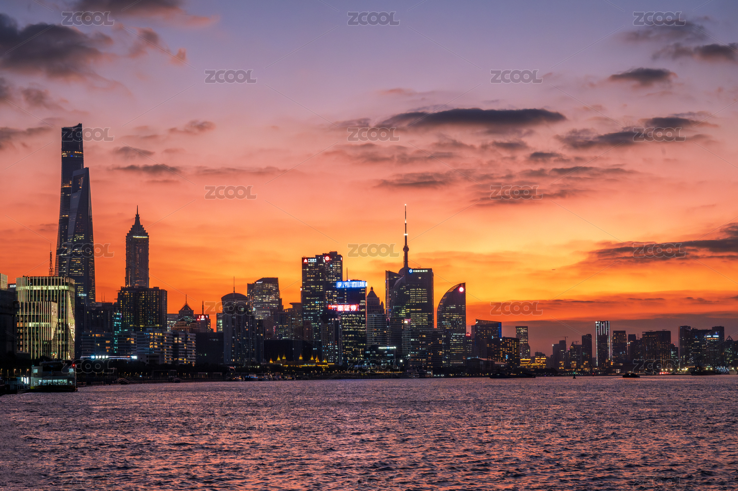 城市,都市,滨江,黄昏,傍晚,现代,天际线,摩天大楼,船,户外